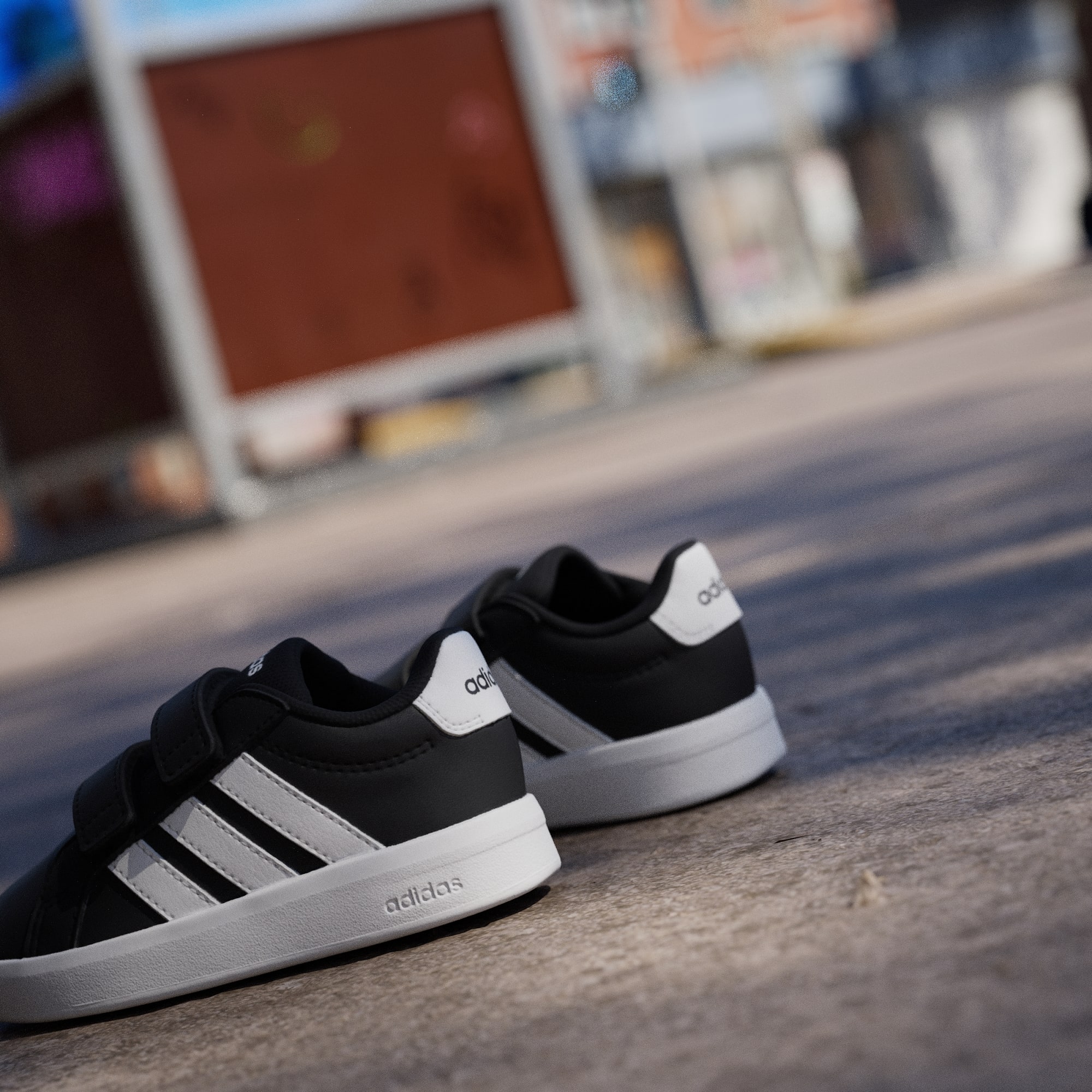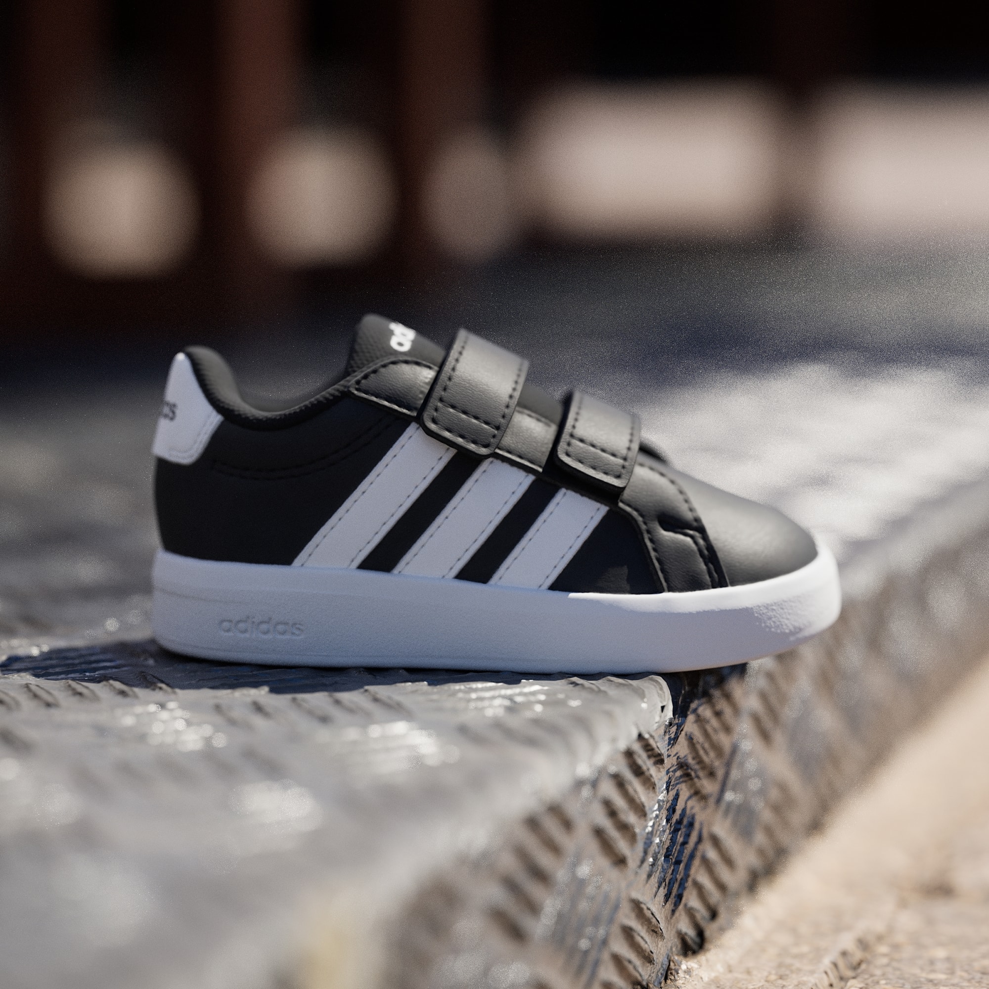Grand Court 3.0-skoene til de minste er klassiske adidas-sko redesignet for små føtter. Disse har med seg tidløs stil til de yngste eventyrerne, komplett med justerbare borrelåsstropper som gjør det enkelt for foreldre å ta dem på. EVA-sålen i én del gir komfort for små eventyrere mens de utforsker verden, mens yttersålen av gummi har fotfeste både innendørs og utendørs. Disse småbarnsskoene har adidas-brandingen med 3-Stripes på sidestykket og logo på hælfliken, og gir de små antrekkene en sporty stil. De designes for komfort og brukervennlighet, og setter sammen klassisk banestil med praktiske funksjoner for små føtter.