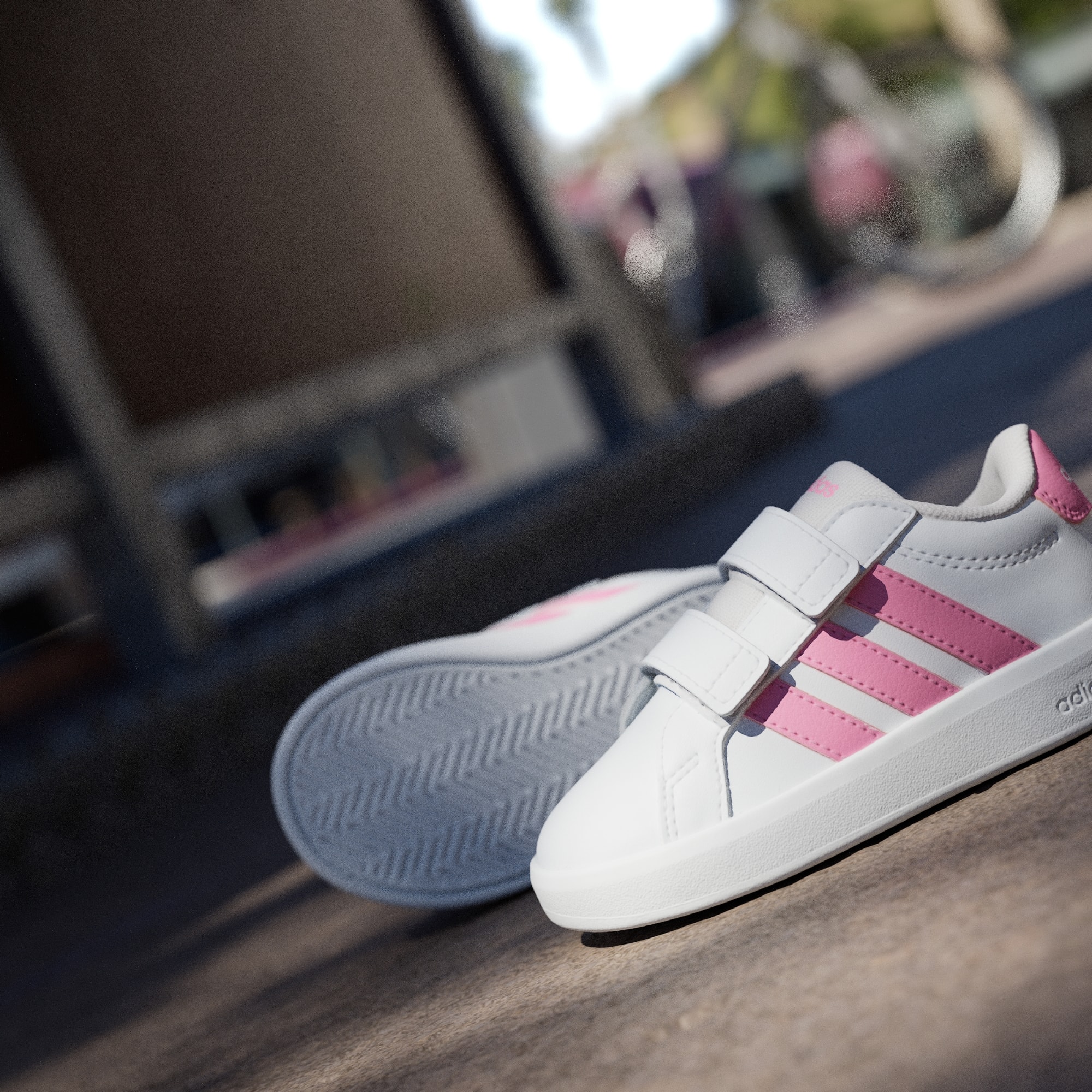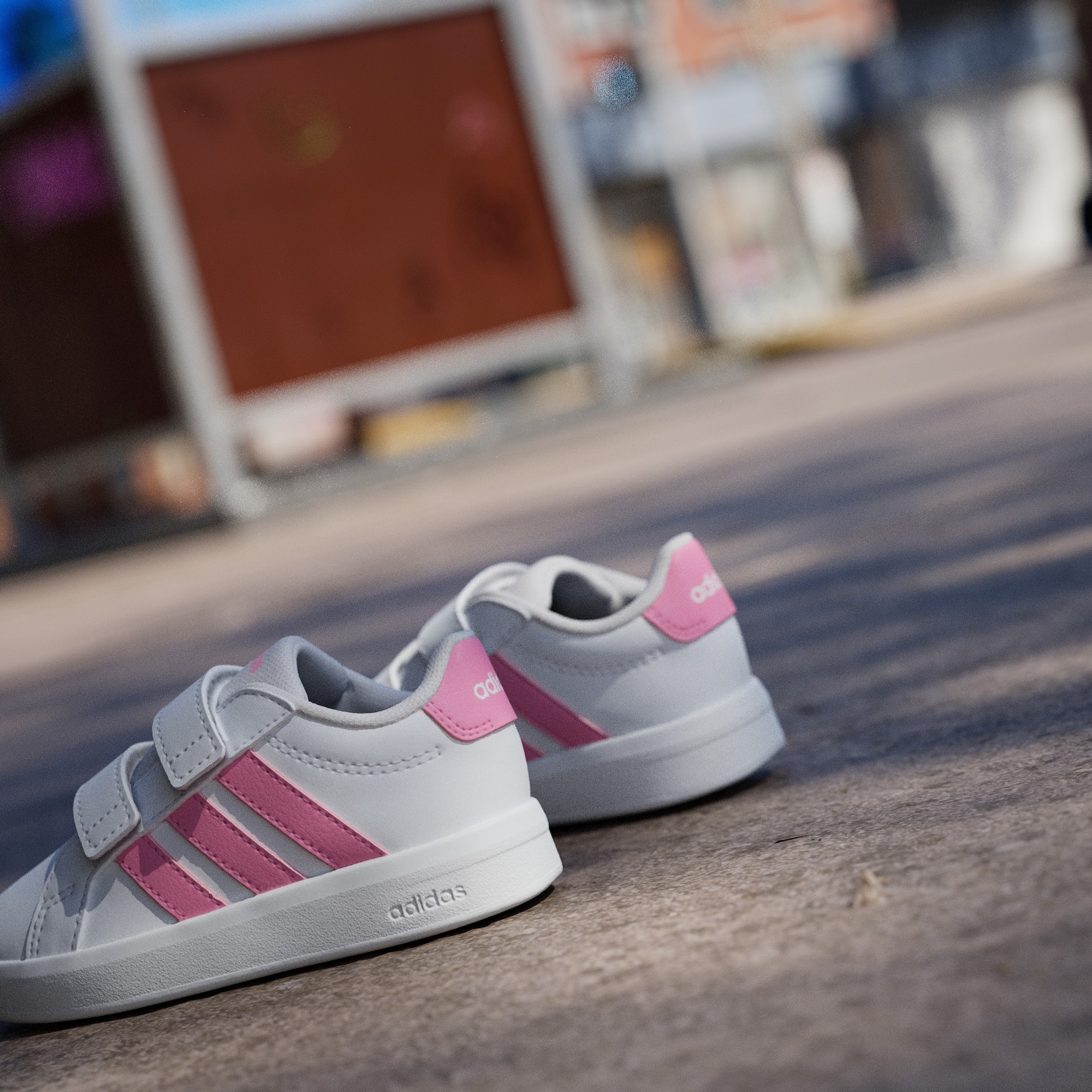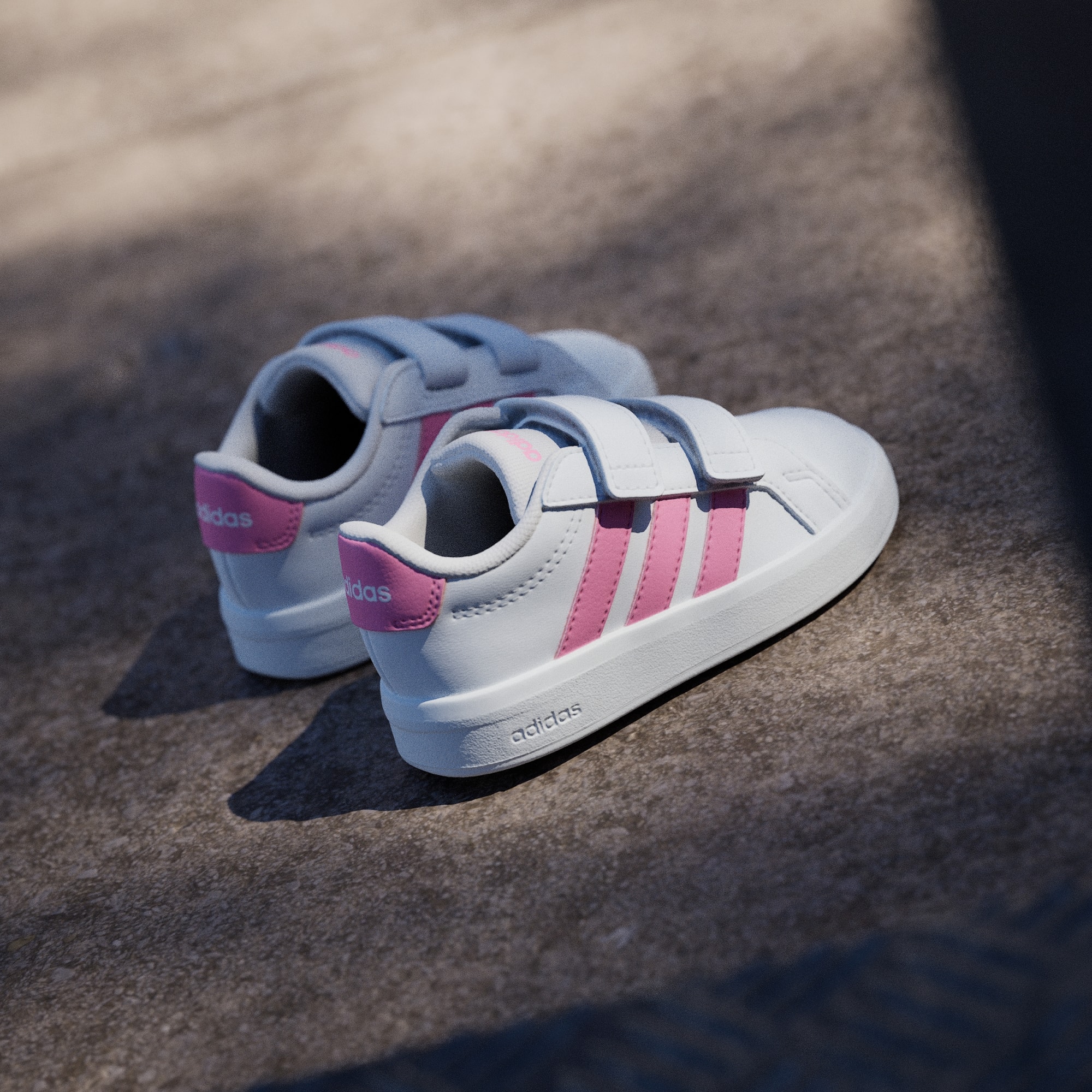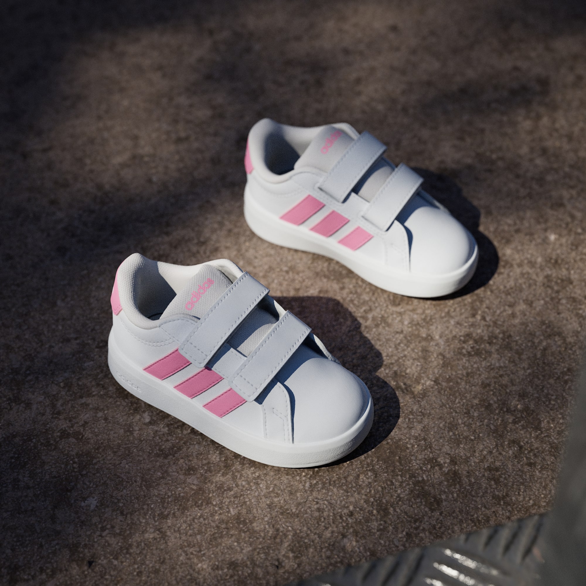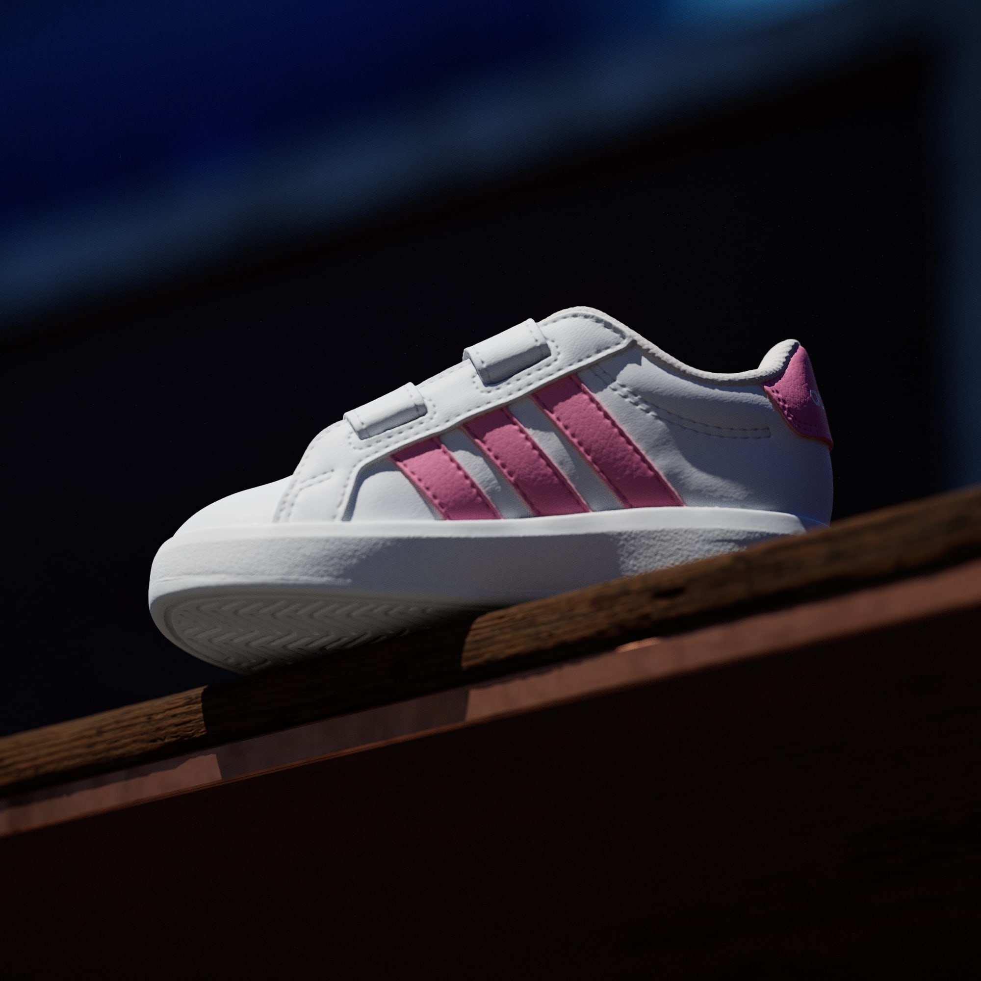 Grand Court 3.0-skoene til de minste er klassiske adidas-sko redesignet for små føtter. Disse har med seg tidløs stil til de yngste eventyrerne, komplett med justerbare borrelåsstropper som gjør det enkelt for foreldre å ta dem på. EVA-sålen i én del gir komfort for små eventyrere mens de utforsker verden, mens yttersålen av gummi har fotfeste både innendørs og utendørs. Disse småbarnsskoene har adidas-brandingen med 3-Stripes på sidestykket og logo på hælfliken, og gir de små antrekkene en sporty stil. De designes for komfort og brukervennlighet, og setter sammen klassisk banestil med praktiske funksjoner for små føtter.