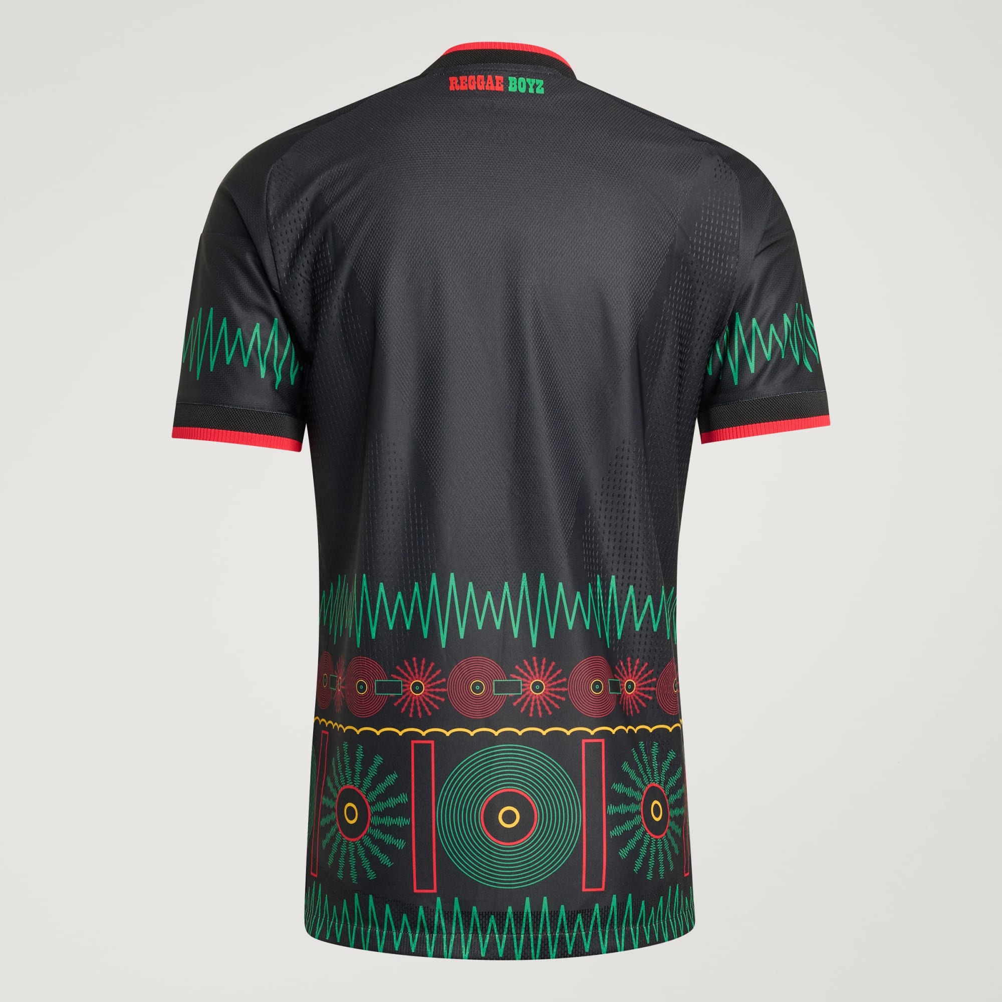 Reggae-vibbene kommer til liv i denne iøynefallende, svarte Jamaica-bortedrakten. Lydbølgemønstre og vinylplate-grafikken kombineres med ikoniske detaljer i rødt, gull og grønt, til å bli en feiring av den fargesterke kulturen på Jamaica.