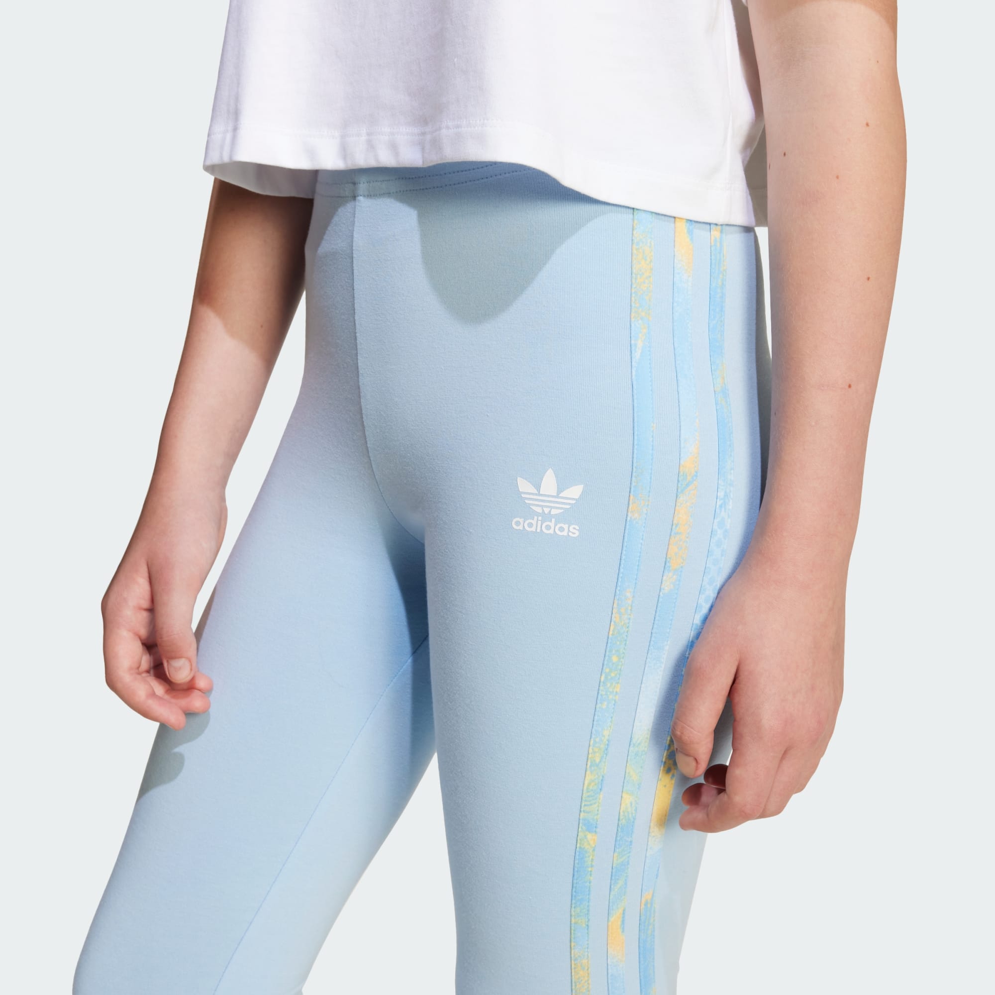 Slip into these juniors' adidas tights and instantly dial up your look. Their vibrant infill print on the 3-Stripes nods to '80s retro sports style, and the soft, stretchy fabric moves with you for all-day comfort. Whether you're exploring your city or just relaxing at home, these leggings keep you feeling and looking good.