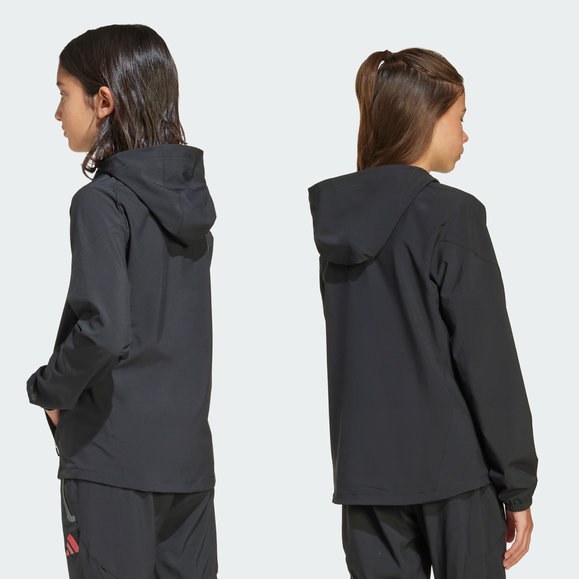 Ta med deg Liverpool FC-lidenskapen din på turné i en adidas-jakke laget for juniorer, og komfortable reiser. Denne fotballoverdelen med hel glidelås har snitt som blir en smal passform i elastisk stoff som beveger seg sammen med deg. Klubbemblemet lages i reflekstrykk, og skinner med lagstolthet kilometer etter kilometer.