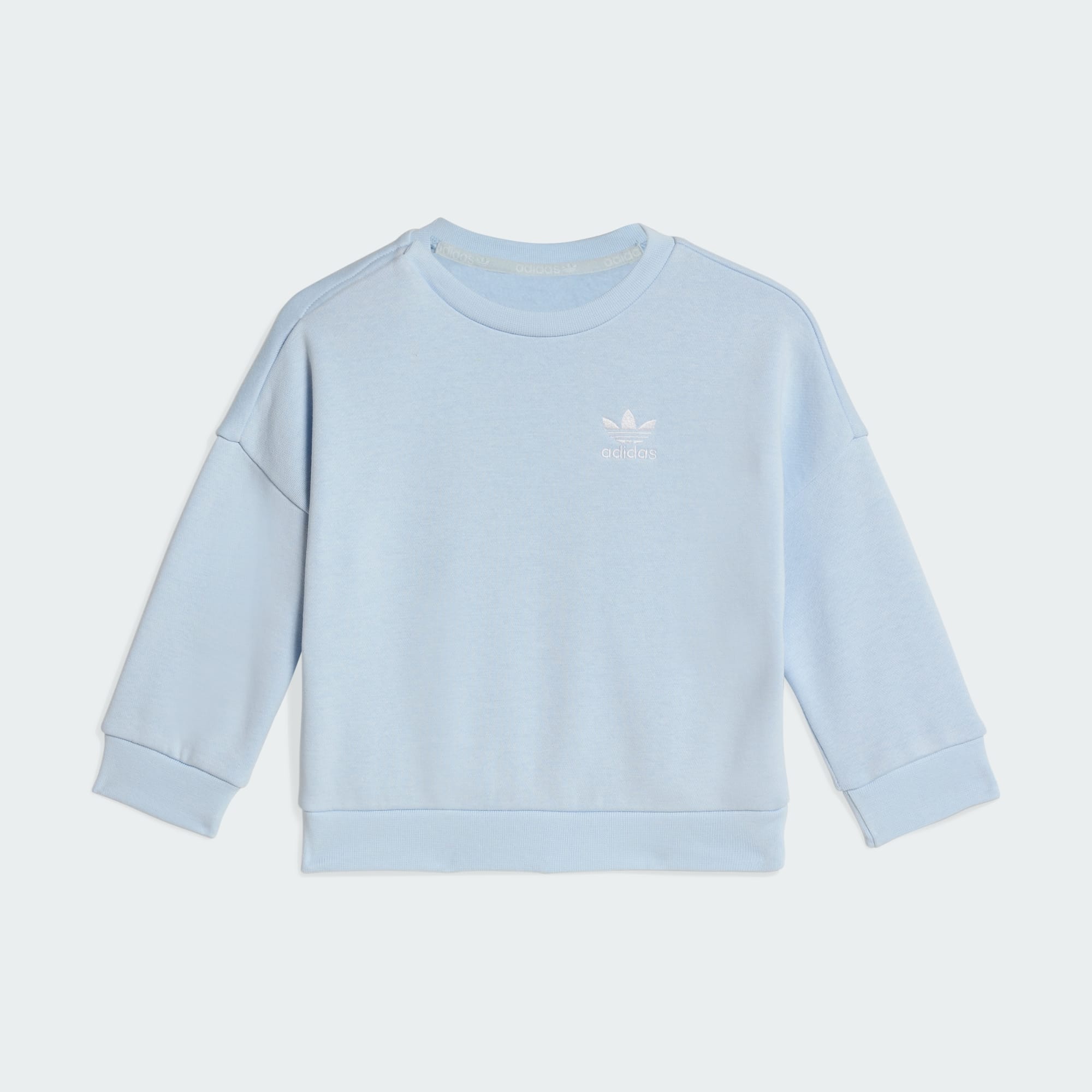 Loose Crew-settet designes for de små som alltid er i bevegelse. Enten det er lange dager i parken eller komfortable ettermiddager inne, blir denne joggedressen et favorittplagg til daglige eventyr. Settet lages av mykt og strikket fleece-stoff som leverer både varme og komfort og gjør det til et utmerket valg på alle slags leke- og fritidsarenaer. Løs passform på overdelen og normal passform i underdelen sørger før bevegelsesfrihet, slik at de minste enkelt kan utforske omgivelsene sine. Med det mellomhøye midjebåndet har joggebuksen en sikker og komfortabel passform, mens trykknapplukkingen gjør det til en lek å kle på seg. Stablet logobroderi bidrar med adidas-arven, så dette settet er ikke bare praktisk, det er stilsikkert også. Omfavn Originals-ånden med dette essensielle settet, og bland stil og komfort sømløst.