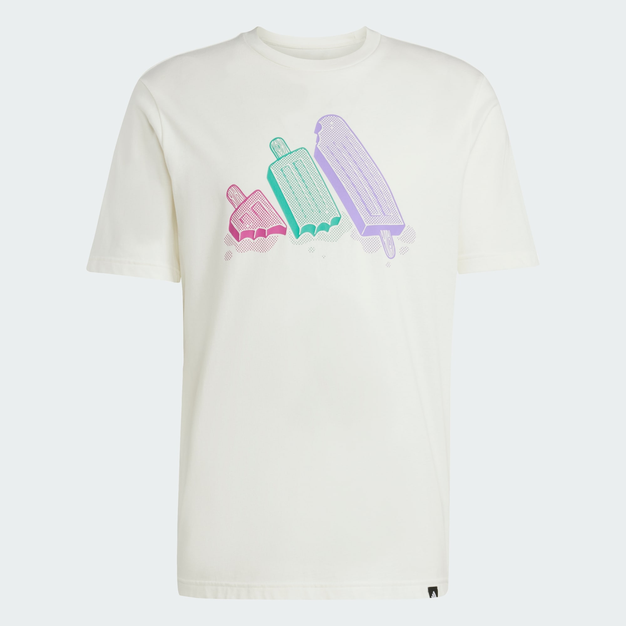 Denne adidas-t-skjorten feirer avslappede sommerdager. Jersey-stoffet av bomull holder deg komfortabel, enten du er på farten eller slapper av. Leken grafikk henter frem nostalgien for iskrem og andre godbiter fra barndommen.