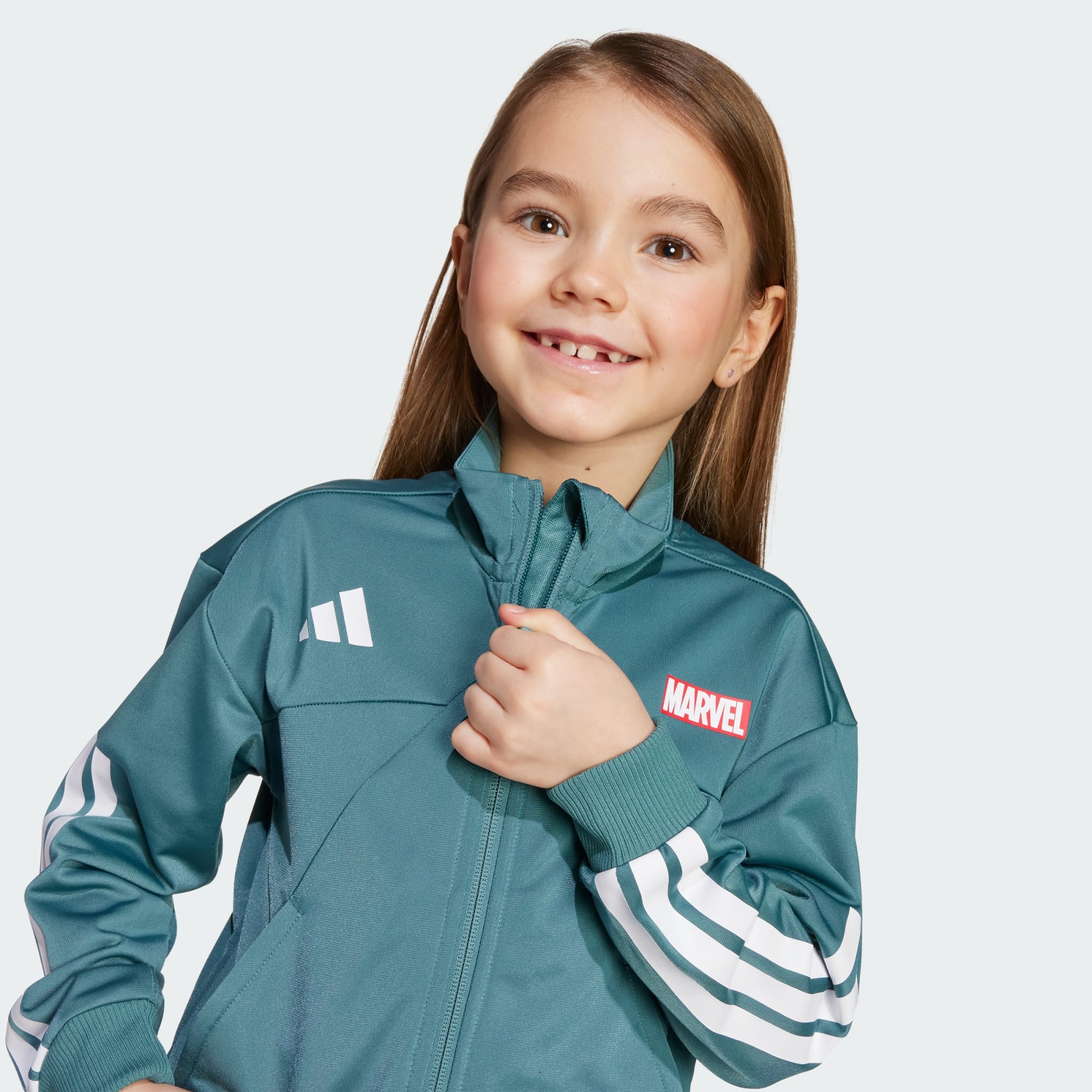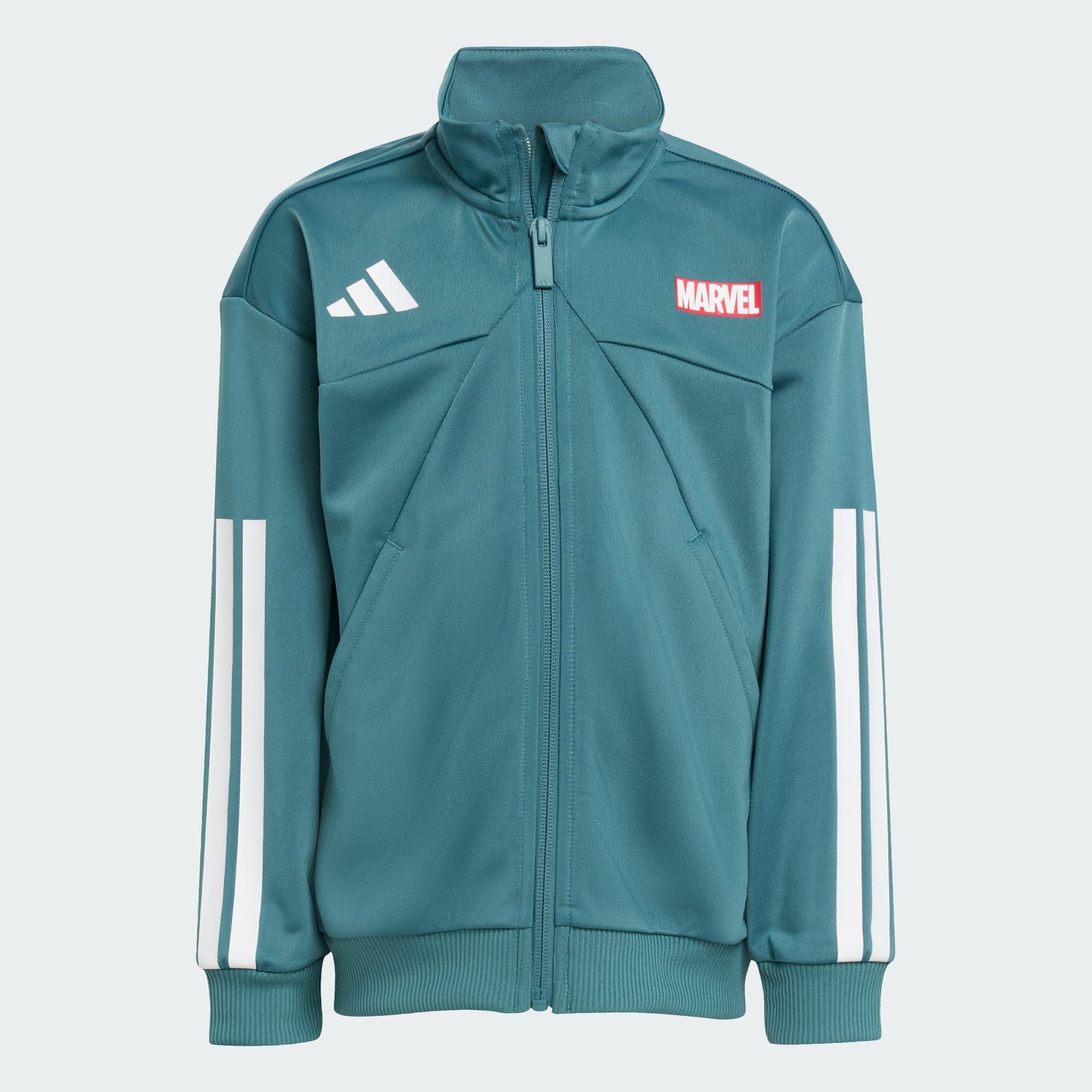Med denne adidas-treningsdressen for barn er den unge superhelten din klar for action. Den er inspirert av Spider-Man med fargerikt tegneserietrykk på baksiden av treningsjakken. Det myke trikotstoffet og avslappet passform sikrer at de holder seg komfortable enten de svinger seg gjennom byen eller bare løper rundt på lekeplassen.