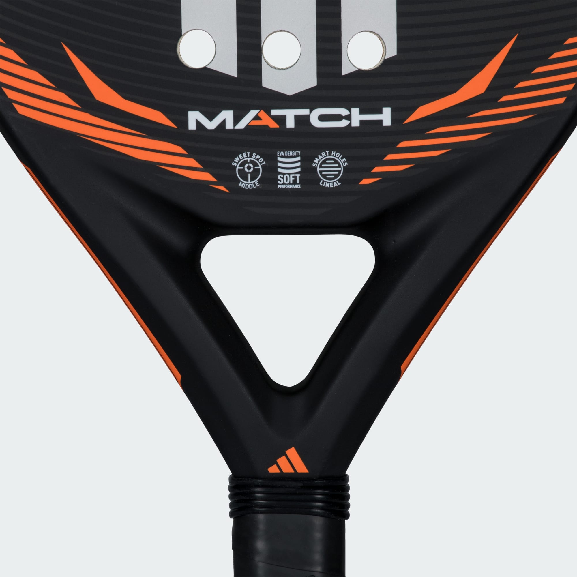 Finslip ferdighetene dine med Match 2026 padel-racketen. Den utvikles for spillere som er nye i sporten, og støtter deg mens du oppdager sporten og utvikler din egen spillestil. Hybridformen mellom rund og diamantform støtter racketens ytelse og hjelper deg med både angreps- og defensive slag mens du mestrer teknikken din. Det smarte, lineære designet med hull i lik avstand i grupper på tre styrker slagflaten og gir økt holdbarhet. Myk og høytytende EVA-gummi med lav tetthet gir pålitelig ballutgang, og strukturelle forsterkninger rundt racketens omkrets kommer med motstand mot høye torsjonskrefter under kamper og treningsøkter. Glassfiberkonstruksjonen gjør denne robust nok til å tåle spillets påkjenninger. La adidas følge padel-reisen din med innovativt design og kvalitet. Gjør dette til favoritt-racketen for hver gang du setter føttene på padelbanen.