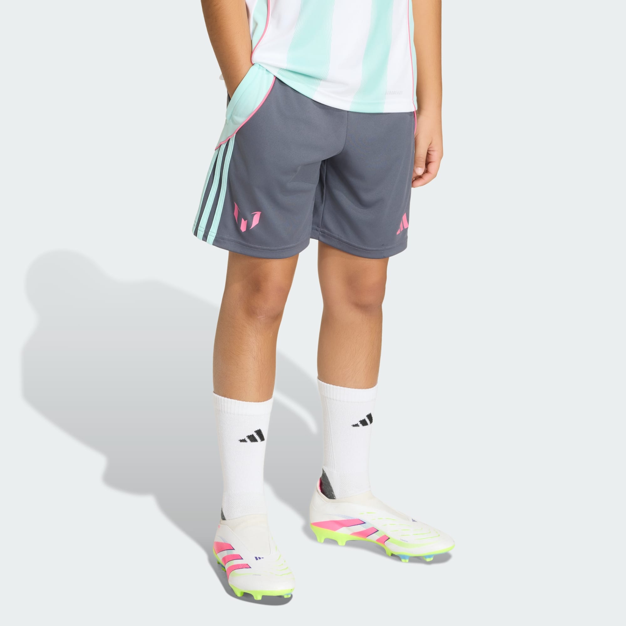 Vis frem lidenskapen for Lionel Messi på banen. Denne fotballshortsen for juniorer fra adidas holder deg komfortabel med fuktkontrollerende AEROREADY, og hjelper deg med å spille på toppnivå. Messi-logoen på benet er en stilig påminnelse om storheten du streber etter.