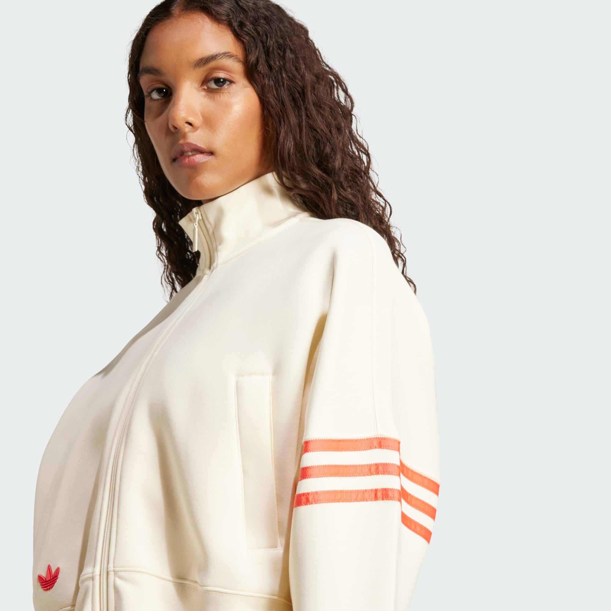 Denne treningsjakken følger bevegelsene dine, med en overdimensjonert silhuett og ribbestrikkede mansjetter. Stoffet av bomullsblanding holder komforten på topp, og signaturdetaljer som 3-Stripes rundt det ene ermet kobler deg til adidas Originals-stilen. Bruk den som et lag over en avkortet topp eller alene – uansett har du en treningsoverdel som er laget for distansen. Ved å velge resirkulerte materialer, kan vi gjenbruke materialer som allerede er produsert, for å bidra til å redusere avfall. Valg av fornybare materialer hjelper oss med å fjerne avhengigheten av begrensede ressurser. Produktene våre som lages med en blanding av resirkulerte og fornybare materialer, inneholder minst 70 % av disse materialene totalt.