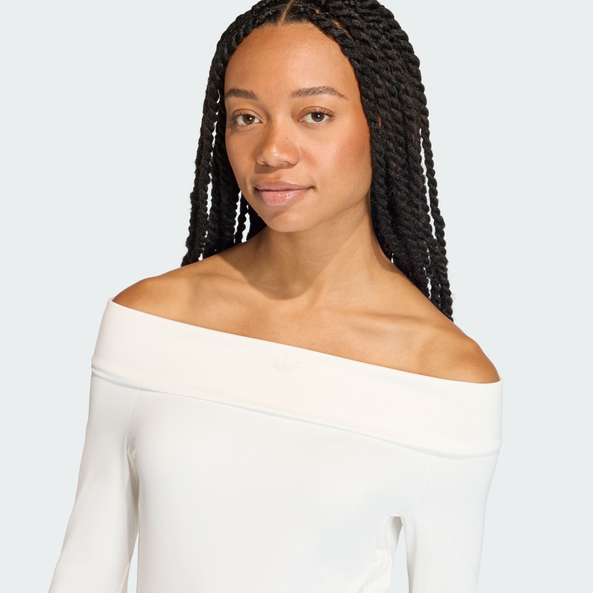 Gi stiluttrykket ditt den sporty elegansen med denne tettsittende, langermede toppen. Utringningen er “off-the-shoulder” for å utstråle avslappet eleganse, mens de praktiske tommelhullene bidrar til å holde stilen din elegant. Mykt, strikket stoff gir en tettsittende og tøyelig følelse, slik at du kan uttrykke stilen din med full selvtillit uten at det går på bekostning av komforten. Diskrete detaljer komplementerer det minimalistiske designet, med adidas 3-Stripes nedover hver side og en nedtonet Trefoil på utringningen. Sammen med joggebukser, jeans eller skjørt, blir denne allsidige toppen raskt et uunnværlig plagg i garderoben.