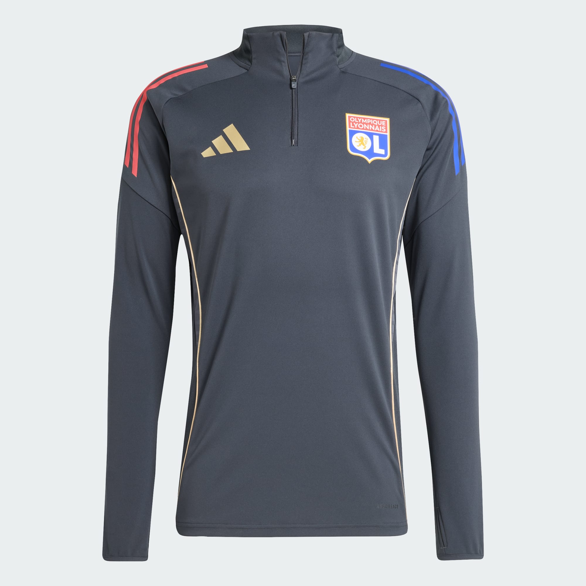 Innta treningsbanen med stolthet over Olympique Lyonnais. Denne fotballoverdelen fra adidas er designet for å holde deg dekket gjennom trening i kaldt vær, og har tommelhull i mansjettene for å trekke de lange ermene over hendene, og fuktkontrollerende AEROREADY som håndterer raskt enhver fuktkonstruksjon. Hvis du trenger å skille måter med det halvveis gjennom en økt, er den kvarte glidelåsen veldig praktisk.