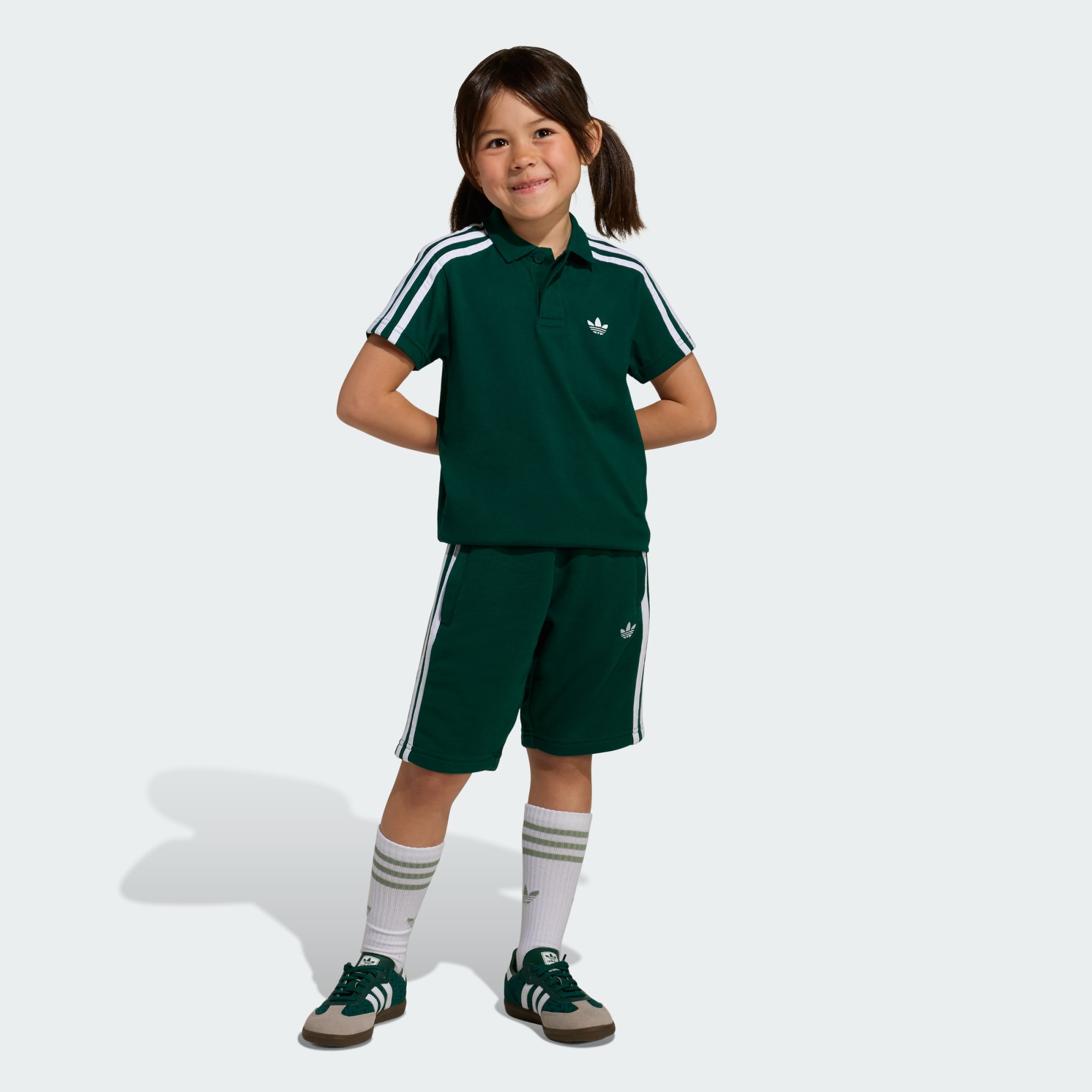 Kle opp den lille for aktivitet i Polo Short Tee-settet. Dette antrekket feirer merkets rikholdige arv samtidig som det leverer en frisk vri på det klassiske designet. Konstruksjonen av enkelt-jersey av bomull gir antrekket komfort og slitestyrke som holder tritt med barnas aktive livsstil. Enten den lille skal på skolen, leke eller trene, gir normal passform enkel bevegelsesfrihet, og lukking med strammesnor hjelper til med å holde alt på plass. Den broderte Trefoil-logoen står som et bevis på den vedvarende innflytelsen til adidas. Polo Short Tee-settet er mer enn bare klesplagg – dette er et stykke adidas-historie, remastret for dagens generasjon. Omfavn den livlige adidas-ånden og la barna uttrykke individualiteten sin med stil og selvtillit.