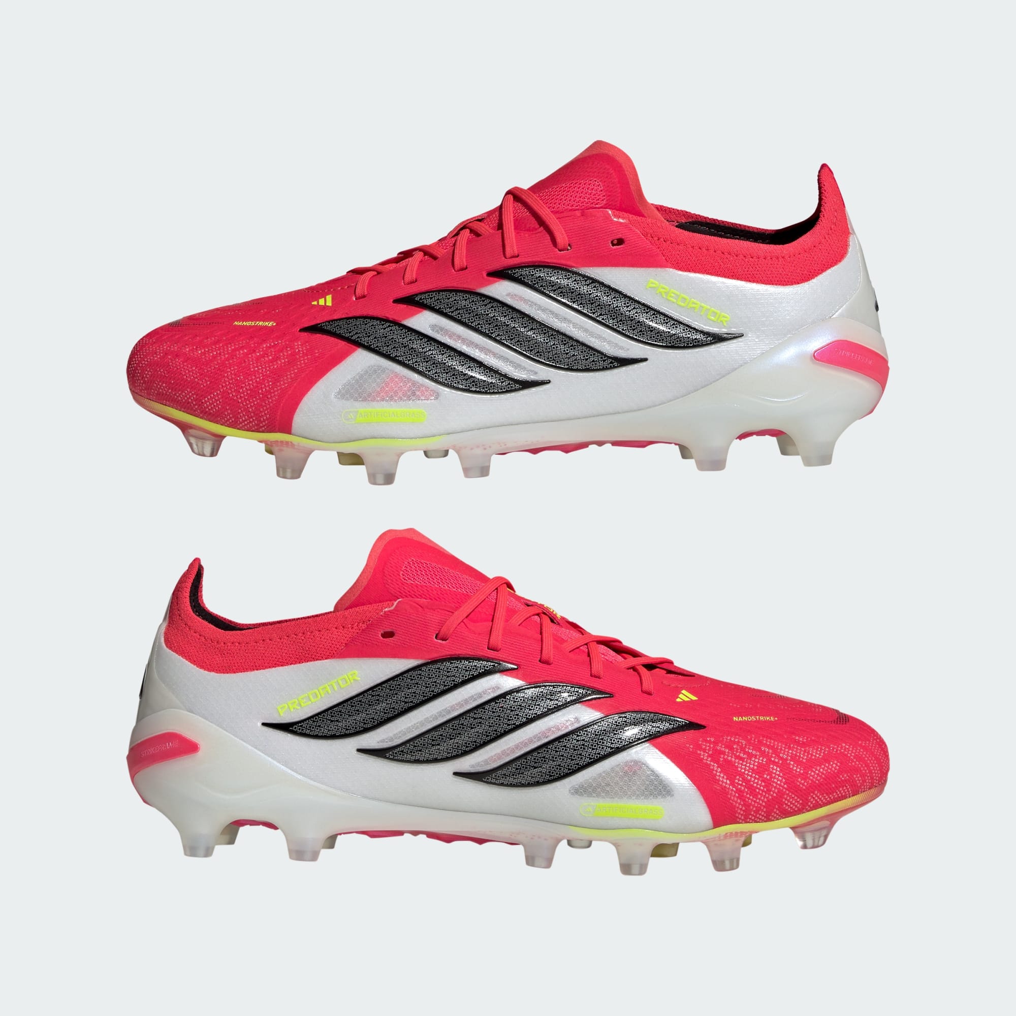 Slipp løs potensialet ditt med Predator Elite Artificial Ground-fotballskoene. Skoene konstrueres med innovativ mesh og banebrytende teknologi, og redefinerer kontroll på banen. For alle som krever stabilitet og kraft, integreres PowerSpine-teknologien sømløst i designet, med forbedret stabiliteten i mellomfoten og sterkere skudd. Opplev synergien mellom passform og grep i NanoStrike+, som kombinerer mykhet i mesh og grepselementer av gummi for presisjon til hver bevegelse. Primeknit-overdelen har en tettsittende passform som tilpasser seg etter føttene, med komfort og ytelse på plass. Disse skoene lages for kunstgressunderlag, og har med seg en lett plate i hel lengde med StrikeFrame-teknologi for optimalt grep, så du får hvert skudd til å telle. Enten du er fotballentusiast eller profesjonell spiller, designes disse adidas-skoene for å hjelpe deg med å prestere.