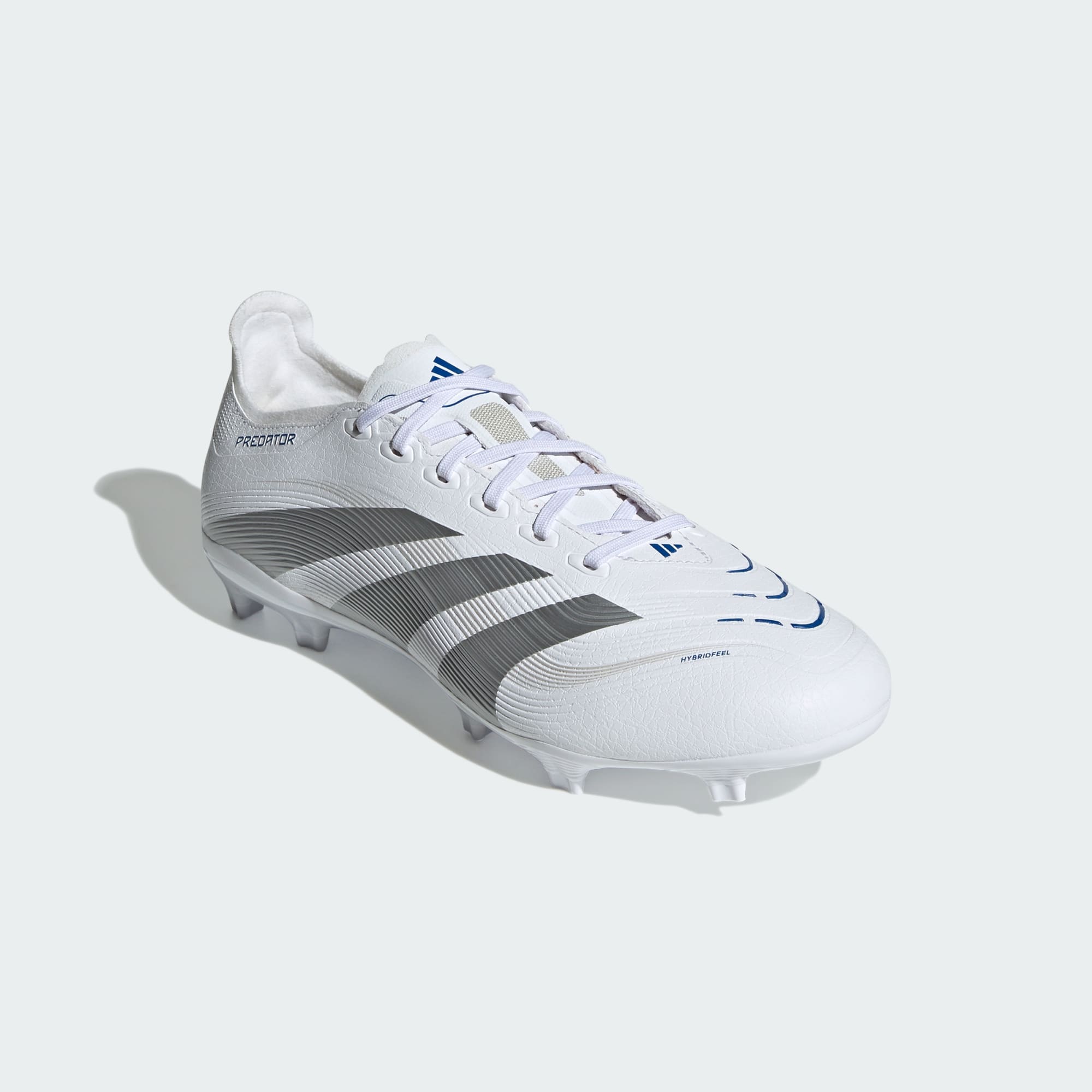 Gå inn i hver kamp, vel vitende om at du scorer i adidas Predator League-fotballskoene, som er laget for målscorere. HybridFeel-overdelen har heldekkende 3D-tekstur og gripesikre Strikescale-finner, laget for å hjelpe deg med å kontrollere ballen gjennom skuddene. Controlplate-yttersålen hjelper deg med å være på rett sted til rett tid, på mange forskjellige overflater.