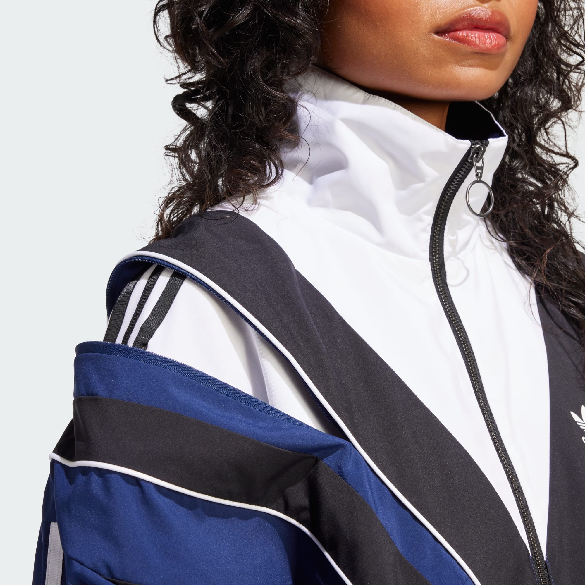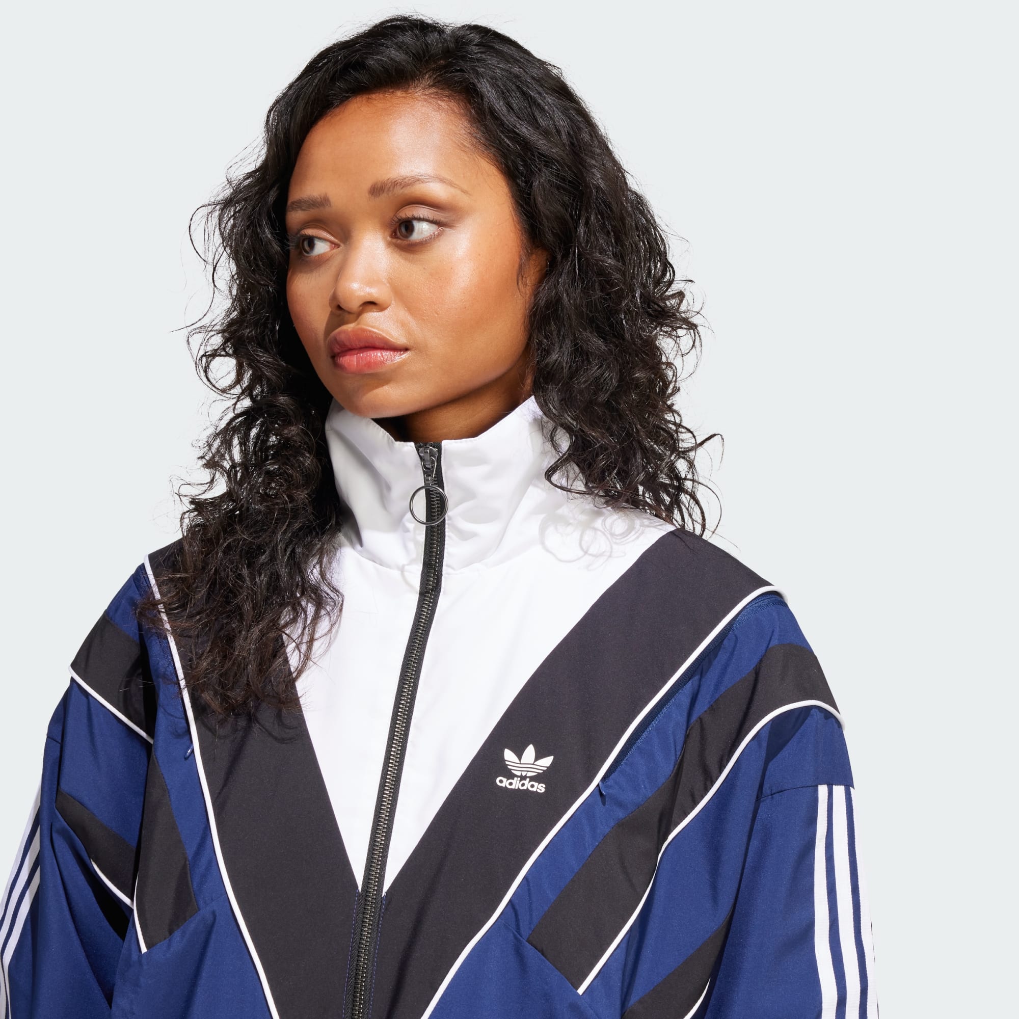 Inspirasjonen til denne adidas-treningsoverdelen er tydelig – designet er pakket fullt av moto-stil som fremheves med snittlinjer inspirert av 2000-tallet. Glidelåser på ermene lar deg åpne opp skuldrene, og vise litt hud eller plagget du har under. Men detaljene stopper ikke der. Strikken på innsiden av ermene lar deg justere lengden. Det handler om eksperimentering, og her er alternativene dine ubegrensede. Dette produktet lages av 100 % resirkulerte materialer. Ved å gjenbruke materialer som allerede er produsert, bidrar vi til å redusere avfall og avhengigheten vår av begrensede ressurser, og reduserer fotavtrykket til produktene vi lager.