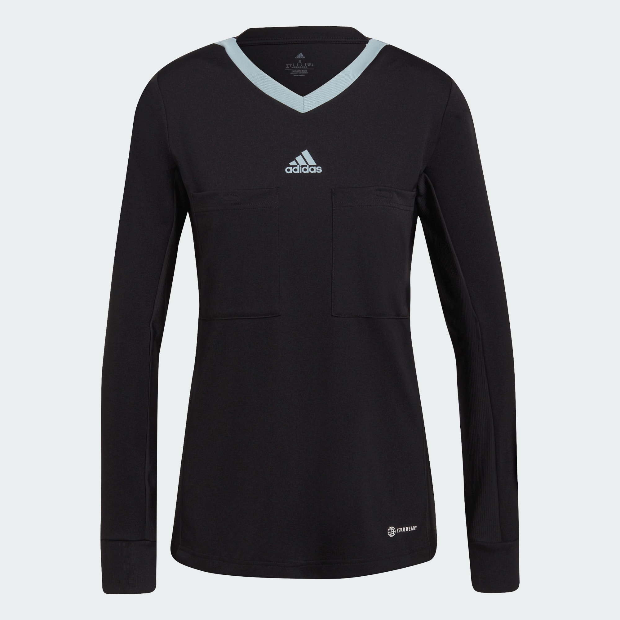 The sign of a perfect refereeing performance? You're barely noticed. While the slim fit and contrast collar on this adidas football jersey vie for attention, everything else is about helping you do your job. The chest pockets hold those all-important cards. Underarm gussets and stretchy side panels give your arms full freedom-of-movement without untucking the hem.