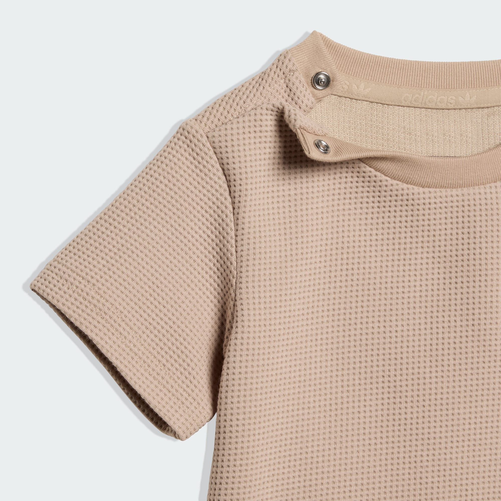 Vi presenterer Regular Waffle Short-t-skjortesettet, hvor hverdagskomforten møter tidløse stildetaljer. Dette settet lages for de små, og designes for å enkelt utfylle mange ulike antrekk. Dobbeltstrikket stoff har en myk følelse mot huden, for komfort som varer hele dagen. Overdelen har normal passform med rund hals, for å skape en klassisk silhuett perfekt sammen med shorts med mellomhøyt liv. Strammesnor i livet gir en tettsittende passform, men også bevegelsesfrihet under lek eller uteturer. Dette settet kles opp med den ikoniske stablede adidas-logoen, brodert på venstre bryst og ben, og gir merkearven en moderne vri. Komfort og stil i like store mengder – omfavn Originals-ånden med dette allsidige ensemblet for barnas hverdagseventyr.