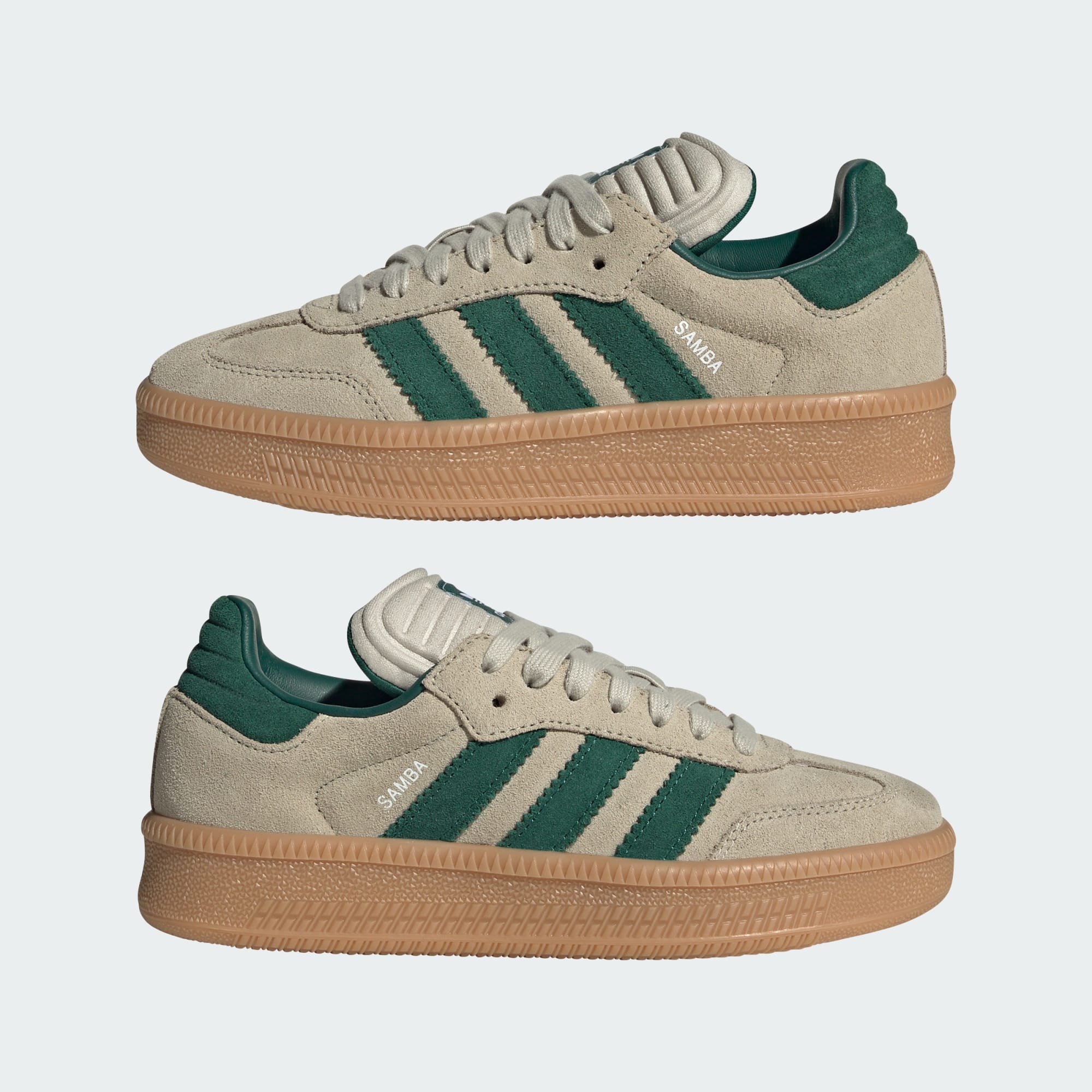 Disse klassiske Samba-skoene har kommet langt siden debuten som fotballsko til innendørsbruk på 1950-tallet. Nå er den et gateikon, og denne sesongens XLG-versjon for juniorer gir ekstra dybde til designet. Skoene er en avslappet, men sofistikert versjon, og har en overdel i premium semsket skinn og en lettere såle i naturgummi. Samba XLG-skoene er perfekte for hverdagsbruk, og er en hyllest til et adidas-basisplagg samtidig som de er freshe for en ny generasjon.