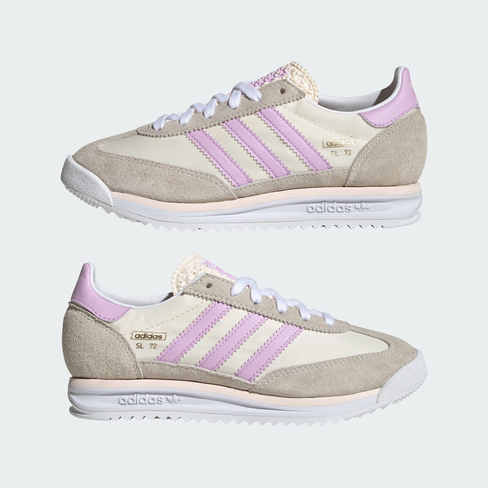 adidas SL 72-skoene ble først utgitt i 1972, med en lett konstruksjon og minimalistisk design som revolusjonerte løping. Dette paret for juniorer gjenskapes for en ny generasjon, og tar med den samme livlige energien til hverdagseventyrene. Overdelen av nylon har semskede overlag og er et nikk til originalen, mens EVA-mellomsålen gir komfort som varer hele dagen.