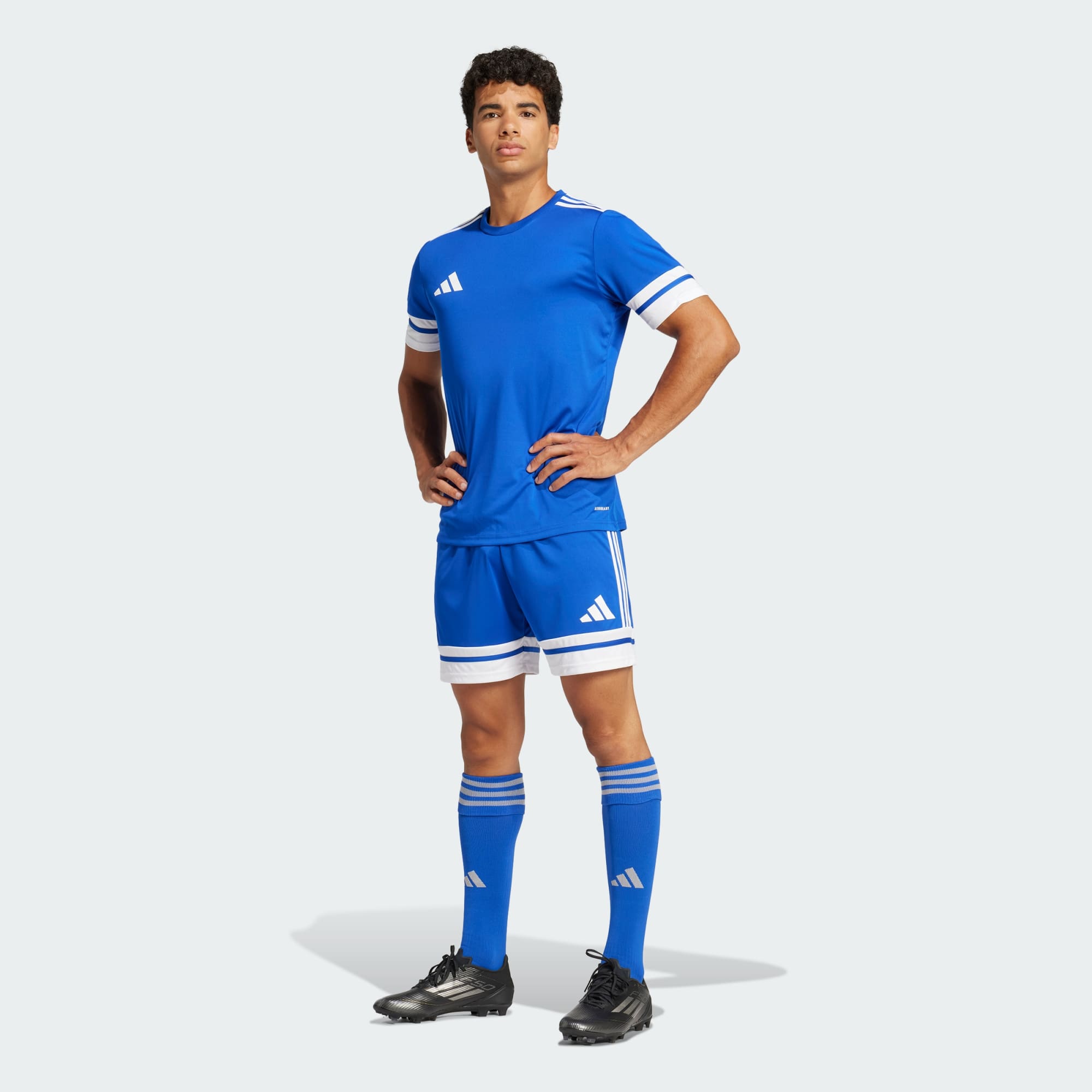 Se ut som og spill som et lag i en adidas-shorts laget for både ytelse og stil. Strammesnoren i livet gir justerbar passform, og fuktkontrollerende AEROREADY holder deg fokusert, så du er komfortabel gjennom taklinger og lynkjappe spark. Bruk dem sammen med Squadra 25-trøyen, for en profesjonell stil som matcher fotballen din.