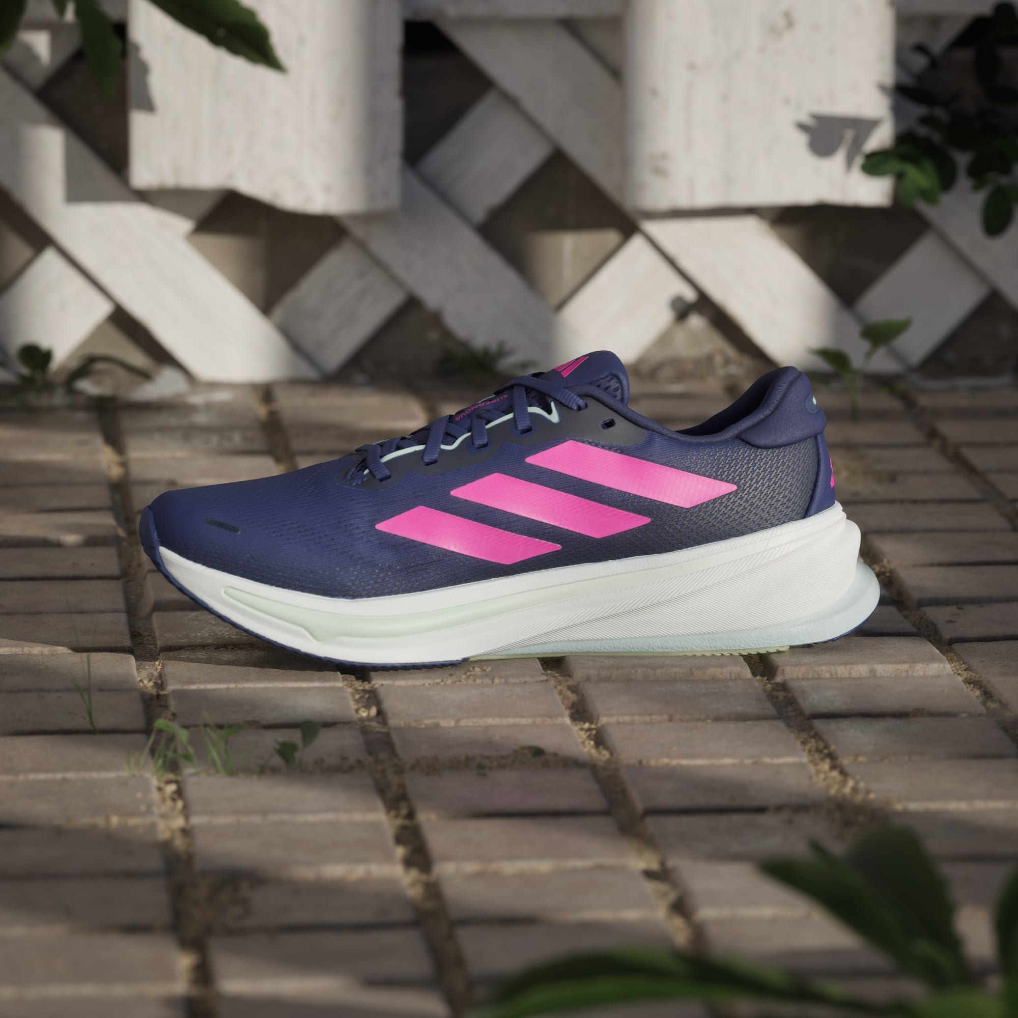 Løping er ikke alltid enkelt. Men med adidas Supernova Rise 2 BMW Berlin Marathon 2025-løpeskoene kan det i alle fall være komfortabelt. Enten du løper for fitness, klarhet i tankene eller for å henge med venner i løpeklubben din, blir disse løpeskoene favoritter som balanserer komfort og støtte. Dreamstrike+-mellomsålen i hel lengde føles myk og stabil, og Support Rods hjelper med jevne overganger. Den tilpassede overdelen av mesh sørger for de pustende egenskapene, så du kan fokusere på målene dine.