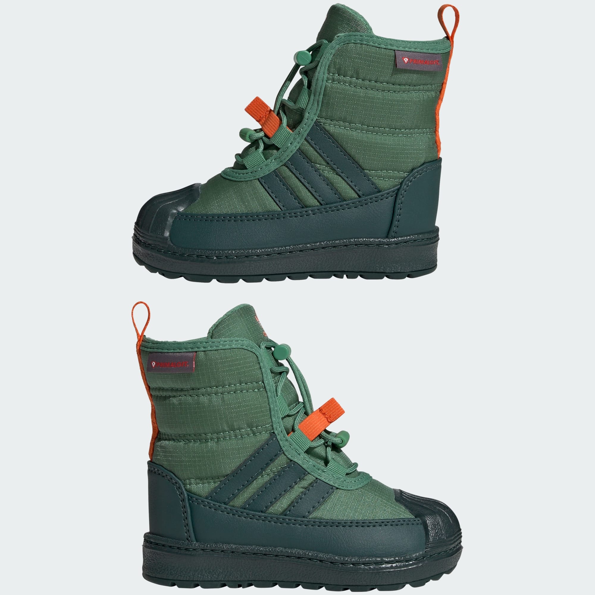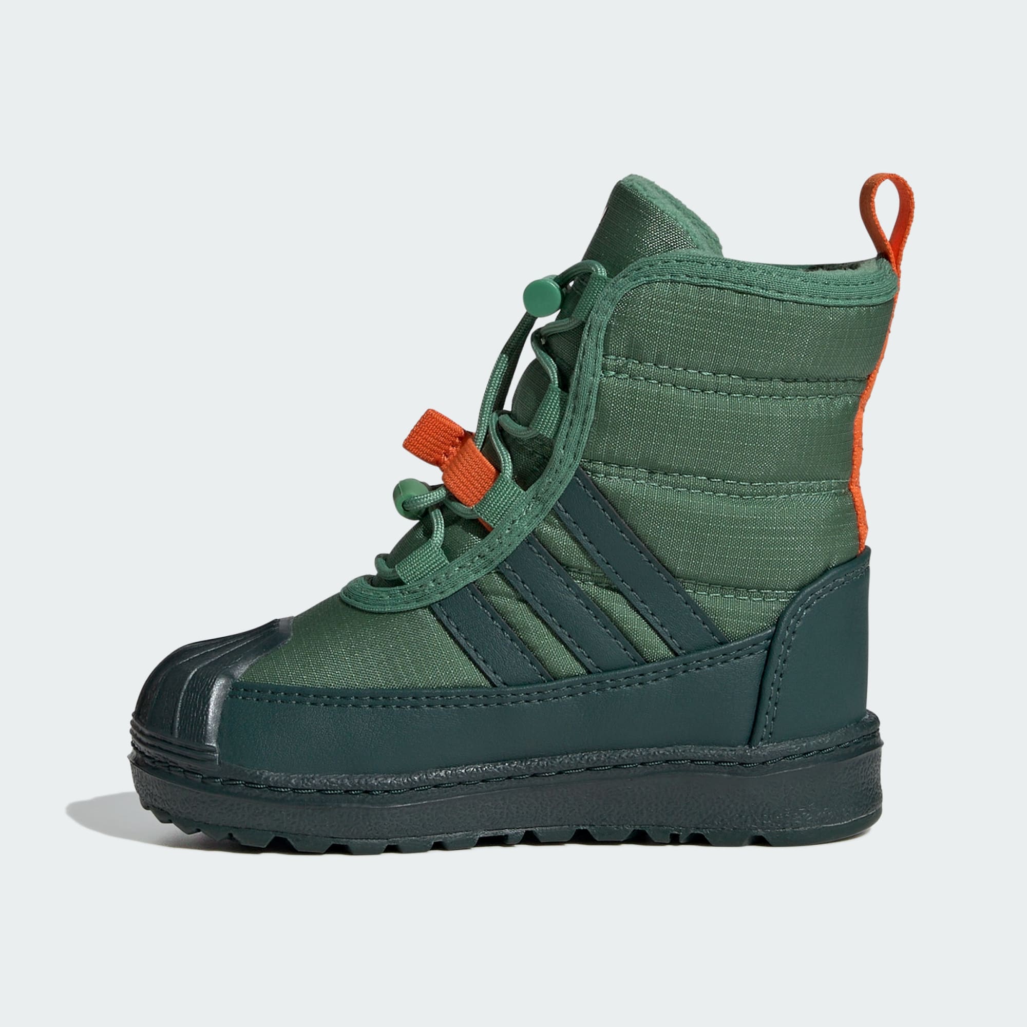 adidas Superstar-støvler for småbarn, laget delvis med resirkulerte materialer.