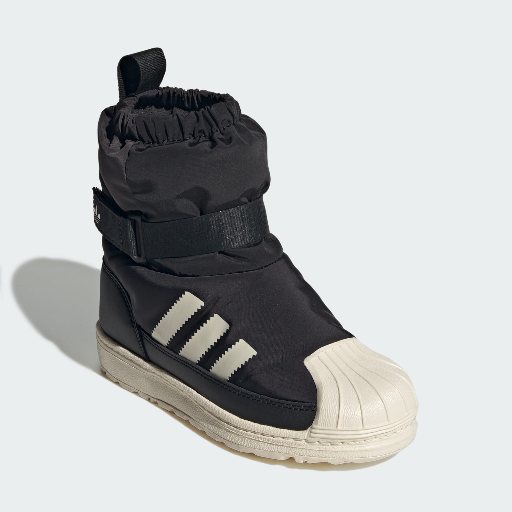 Barna er alltid i bevegelse. Hjelp dem å holde koken i full komfort på de kalde dagene, med disse adidas Superstar 360-støvlene. Overdelen av tekstil er vannavstøtende, og sølebeskyttelsen hjelper føttene med å holde seg tørre og komfortable. Stroppen med borrelås sørger for at de allti er enkle å ta av og på.