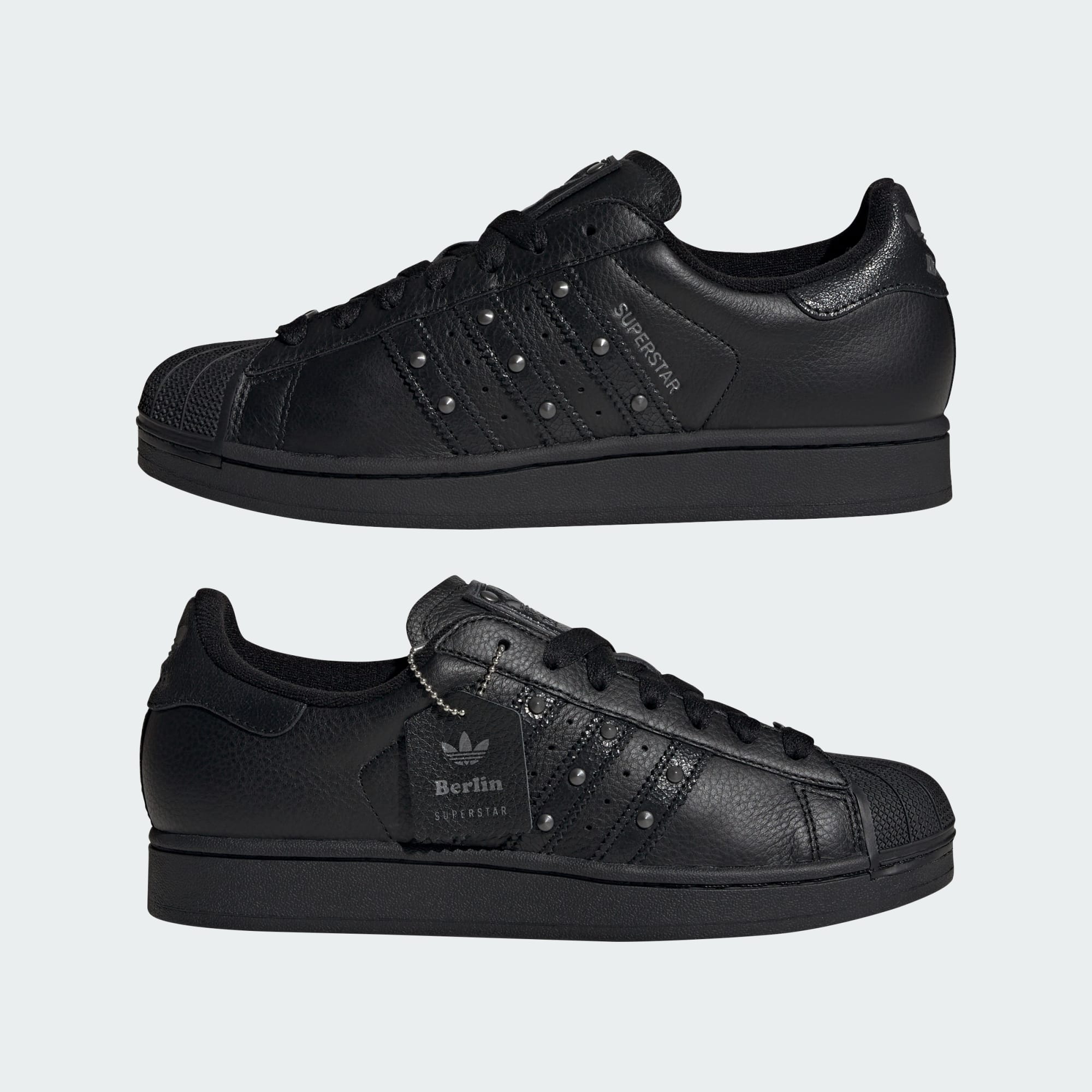 adidas Superstar-skoene ble født på basketballbanene og så adoptert av hiphop-legender – en perfekt oppskrift for å sprenge grenser siden 1970. Dette paret hyller musikk- og dansekulturen i Berlin, kjent verden over som techno-hovedstaden. Slitte detaljer og metallbeslag i stålgrått er inspirert av byens ekstravagante stil. Enten du vandrer langs asfalten eller danser til rytmene, holder disse skoene deg komfortabel med en jevn overdel av skinn og gripesikker gummiyttersåle.