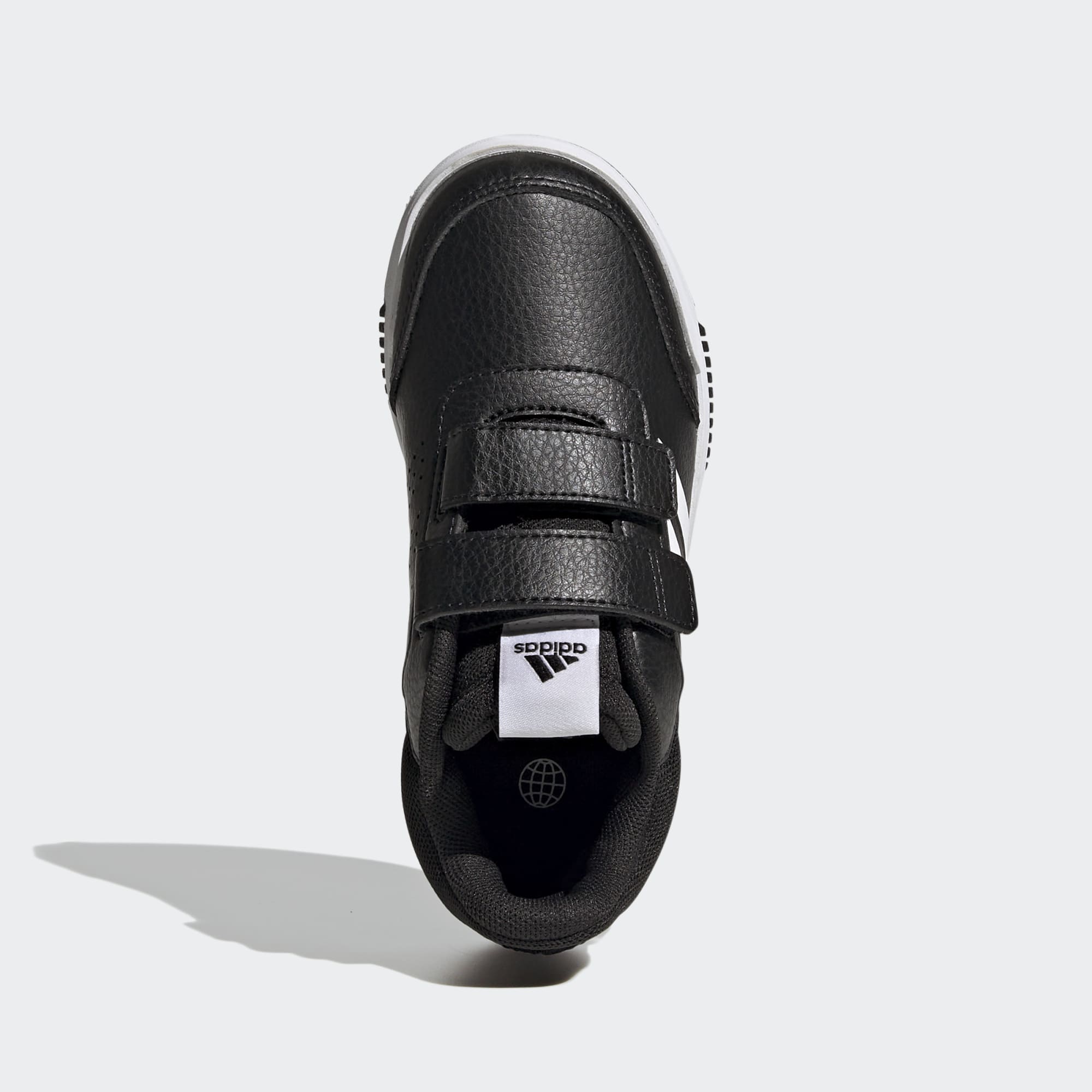 Barn tester skoene sine hele tiden, enten de snurrer, går, hopper eller løper. Disse adidas-skoene er laget med en robust yttersåle av gummi som ikke sverter, og gir godt grep på bakken uten å lage merker på gulvet. Og de to borrelåsstroppene på hver sko er enkle å feste når de er på farten. Overdelen lages med en serie resirkulerte materialer, og har minst 50 % resirkulert innhold. Dette produktet representerer bare én av løsningene våre på veien for å gjøre slutt på plastavfall.