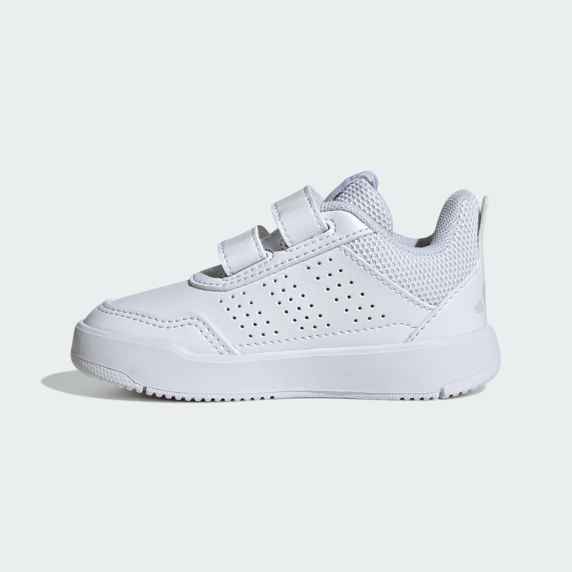 Tensaur Sport 3.0-skoene designes for småbarn som elsker å leke og utforske. Med fokuset innstilt på komfort og brukervennlighet, er disse skoene et must for hverdagseventyrene. Lukkingen med borrelås gjør det enkelt for foreldrene å justere passformen raskt, til en tettsittende og sikker følelse. Denne funksjonen er spesielt nyttig for aktive småbarn som alltid er på farten. Yttersålen av gummi som ikke sverter gir pålitelig fotfeste, slik at barna føler seg stødige på føttene, enten de løper rundt på lekeplassen eller tar de første skrittene sine. En taktil overdel av syntetisk materiale leverer slitestyrke og fleksibilitet, slik at barna kan bevege seg fritt uten begrensninger. Med ikoniske 3-Stripes og Sportswear-logoen på pløsen blir disse skoene ikke bare funksjonelle, men også moteriktige. adidas forstår viktigheten av praktisk bruk og stil, og det er derfor disse skoene kombinerer begge deler uanstrengt. La den lille vandre avgårde med stil og komfort i disse skoene.