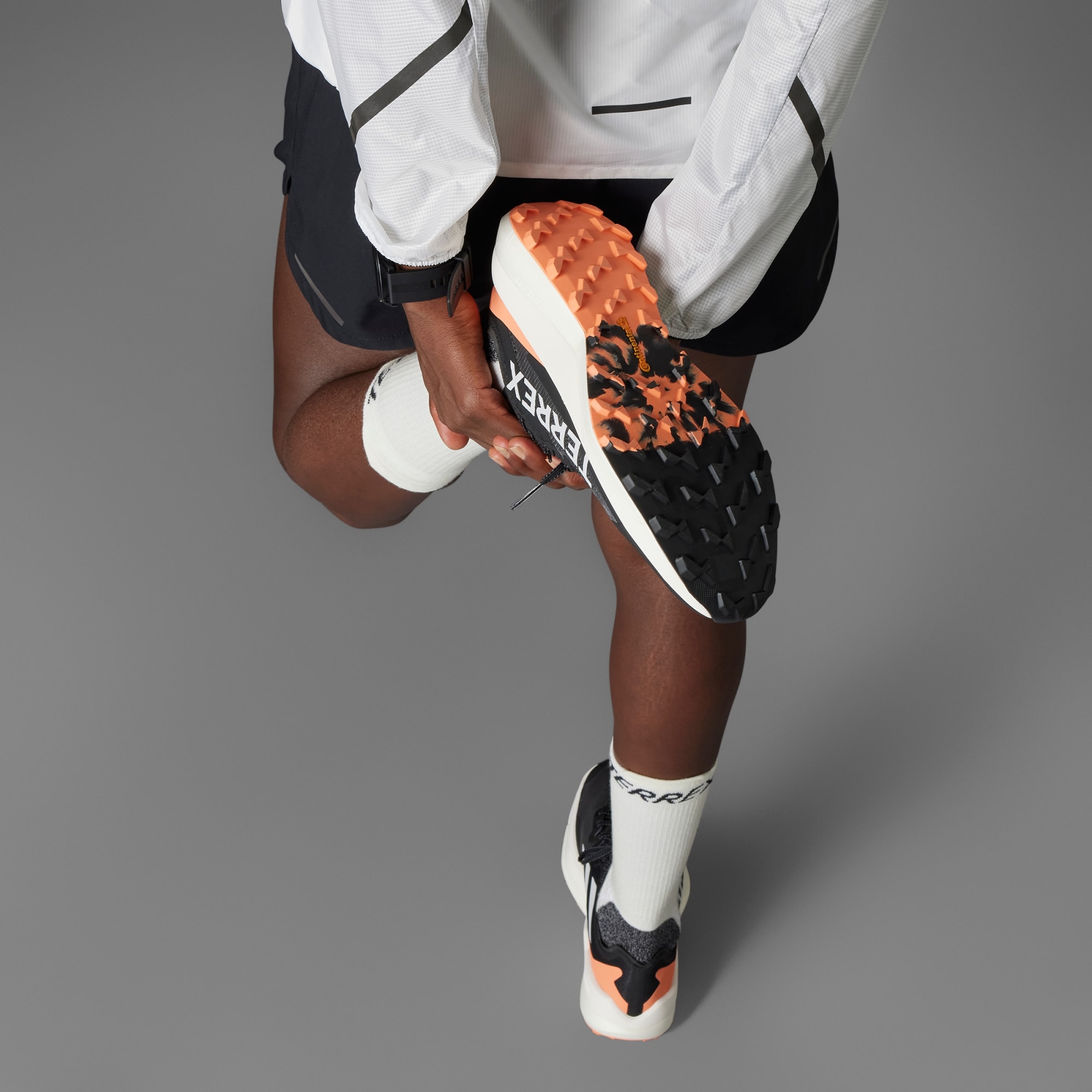 Disse Terrex Agravic-terrengløpeskoene er responsive og klare for terrenget, og lages for oppdagelsesferd i høyt tempo og konkurranser. Den pustende, tettsittende overdelen støtter stegene over variert terreng. Slitesterke overlag takler påkjenninger i terrenget, og den kileformede pløsen beskytter mot smuss. Lightstrike Pro-dempingen opprettholder en lett følelse, og vippeformen gir en jevn avrulling for et raskt tempo. Yttersålen av Continental™-gummi og rillemønster gir sikkert fotfeste på røtter og steiner, enten det er vått eller tørt. Ved å velge resirkulerte materialer, kan vi gjenbruke materialer som allerede er produsert, noe som bidrar til å redusere avfall. Valg av fornybare materialer hjelper oss med å fjerne avhengigheten av begrensede ressurser. Produktene våre som lages med en blanding av resirkulerte og fornybare materialer, inneholder minst 20 % av disse materialene totalt.
