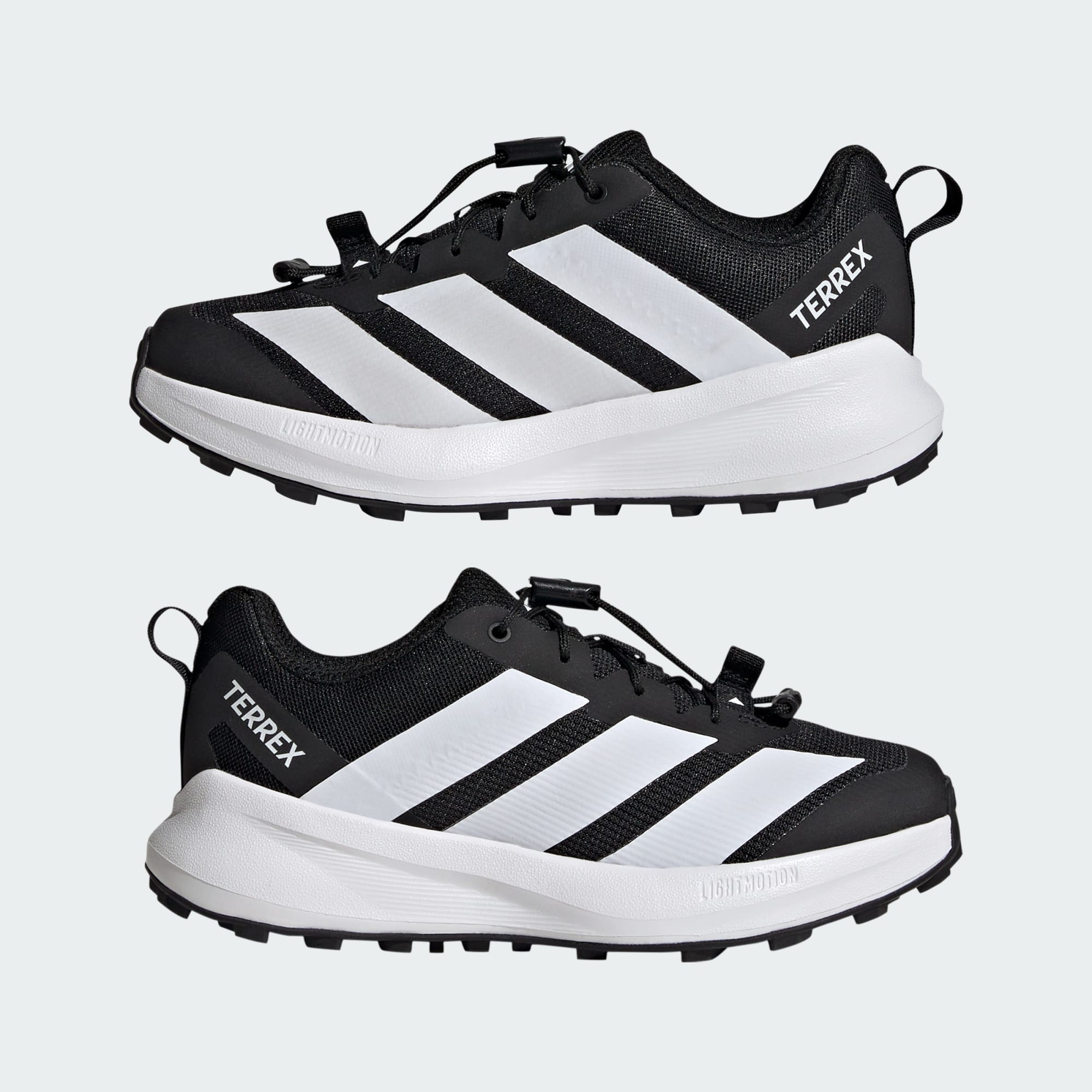 Terrex Agravic Trail Running-skoene designes for å holde tritt med hvert eneste lekne skritt til unge oppdagelsesreisende som elsker å sette full fart på stiene. Lightmotion-teknologien i mellomsålen gir lett komfort, med en balanse mellom støtte og fleksibilitet. Hurtigsnøringen legger til rette for en tettsittende passform, og gjør det enkelt for barna å stramme lissene når de skal sette kursen ut. Overdelen av premium mesh leverer beskyttelse og trygghet, slik at barna enkelt løper og leker. Traxion-teknologien i yttersålen gir suverent fotfeste, slik at små føtter holder seg stødige gjennom flere typer terreng. Med elegante, foliebelagte overlag og fremtredende 3-Stripes gir de et utseende som skiller seg ut. Med adidas-logoen viser disse skoene frem forpliktelsen vår til kvalitet og stil, for alle barnas eventyr.