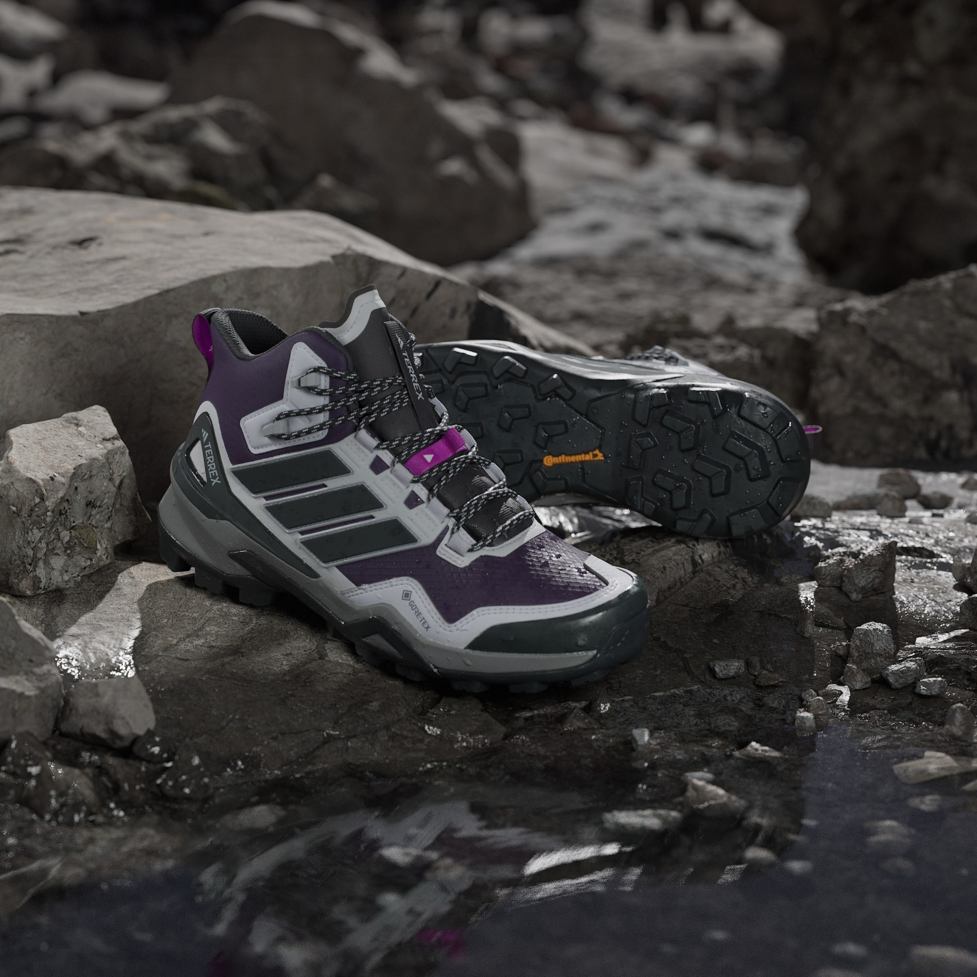 Disse adidas Terrex Skychaser-turskoene er designet for turer og ulendt toppturer, og balanserer komfort, stabilitet og kontroll for å bevege seg raskt i terrenget. De kombinerer den smidige og responsive følelsen fra terrengløpesko med støtten og slitestyrken fra tursko. Komfort fra første bruk og en lett følelse holder deg fokusert på terrenget. Den ekstra støtten fra en mellomhøy kant gir ekstra stabilitet. Den vanntette GORE-TEX EPE-membranen stenger fuktigheten ute, samtidig som føttene får puste og regulere temperaturen. Ripstop-overdelen med slitemotstandige overlag holder dem lette og slitesterke. Continental™-gummi gir godt grep på alle underlag, både våte og tørre. Hurtigsnøring sørger for presis og sikker passform, for nøyaktig fotfeste.