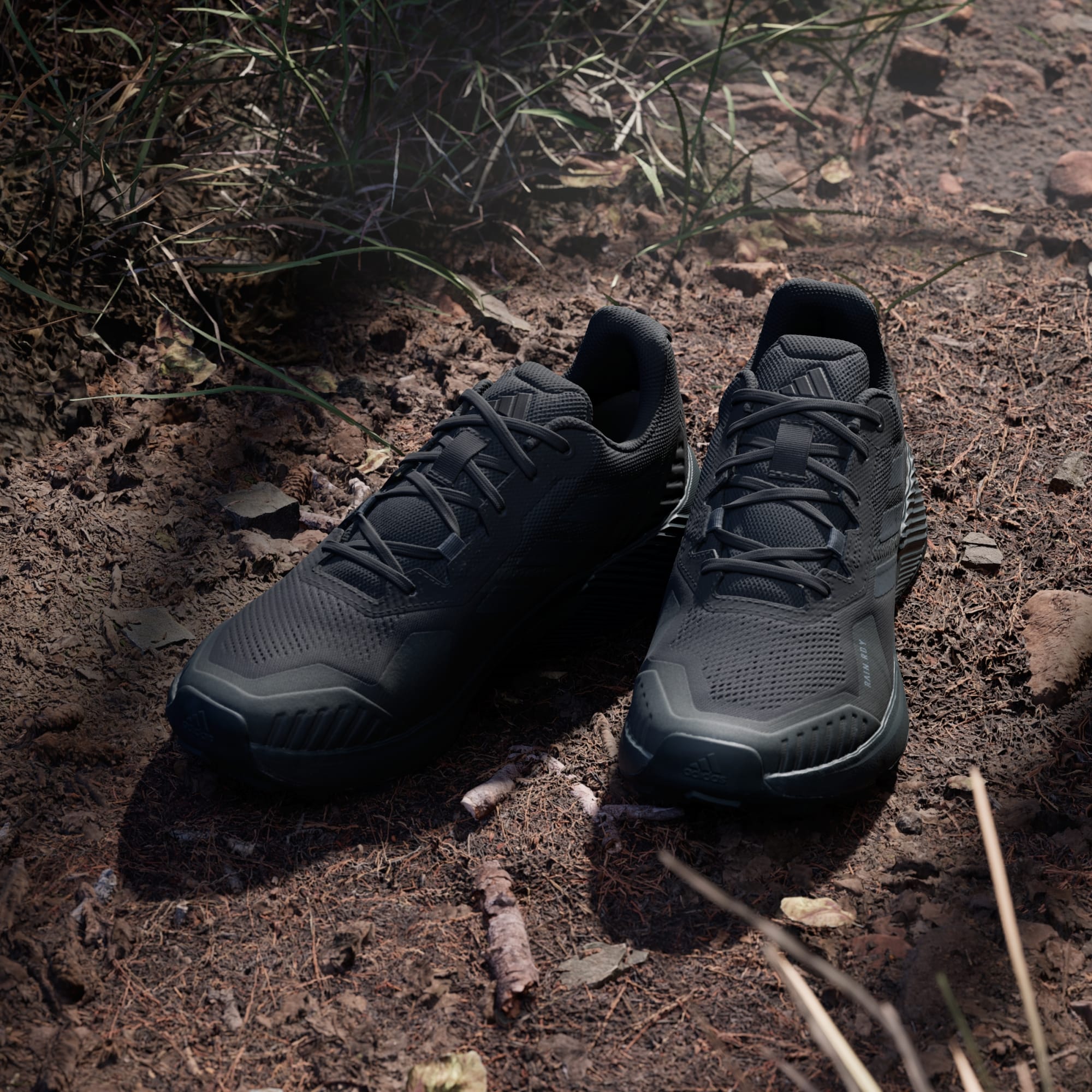 Ta løpeturen i terrenget. Disse terrengløpeskoene fra adidas støtter stegene dine med lett demping og komfort, gjennom hele turen. Vanntett RAIN.RDY holder føttene tørre når du hopper over bekker og gjørmete områder. Traxion-gummi gir grep i flere retninger, både på asfalten og i terrenget. Overdelen lages med en serie resirkulerte materialer, og har minst 50 % resirkulert innhold. Dette produktet representerer bare én av løsningene våre på veien for å gjøre slutt på plastavfall.