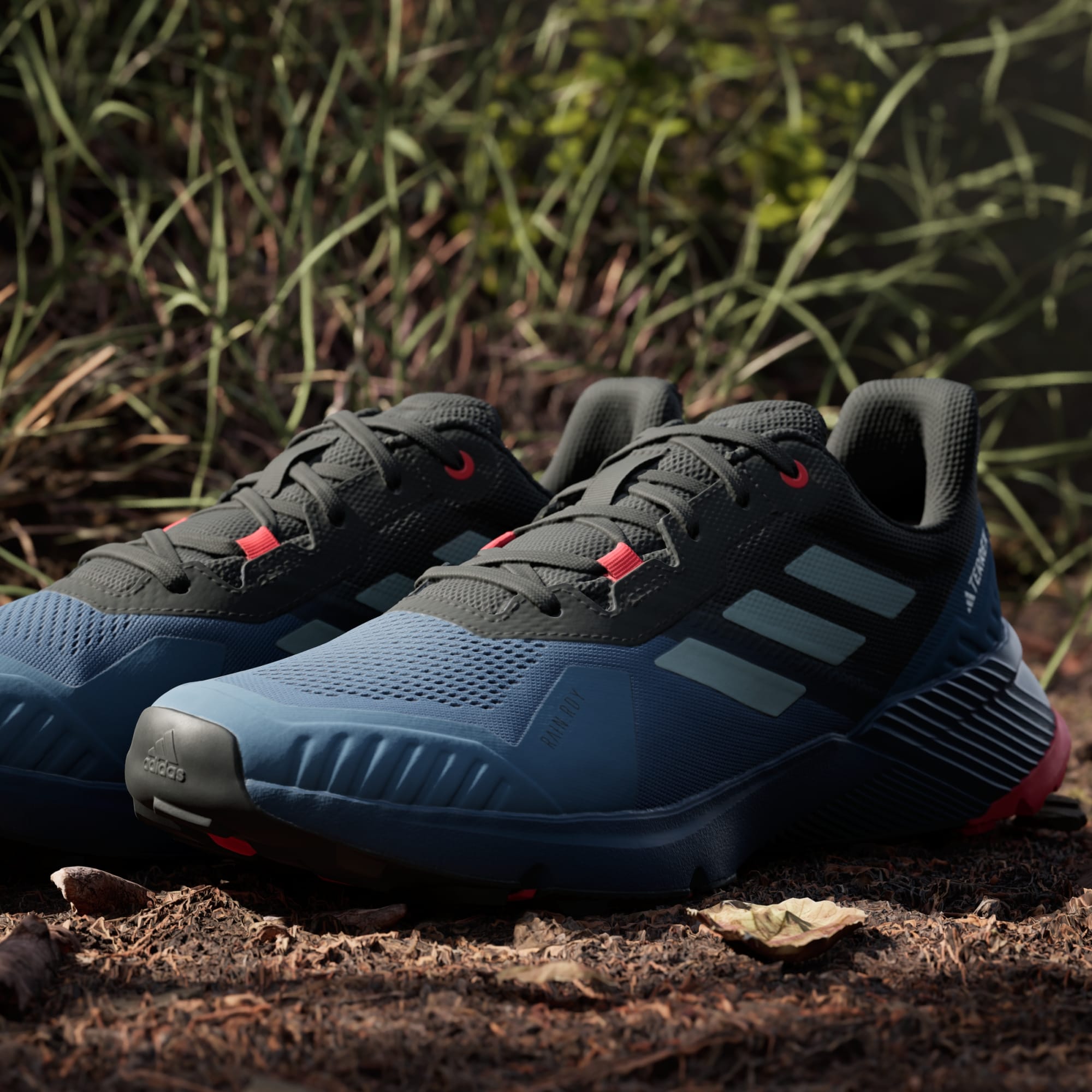 Ta løpeturen i terrenget. Disse terrengløpeskoene fra adidas støtter stegene dine med lett demping og komfort, gjennom hele turen. Vanntett RAIN.RDY holder føttene tørre når du hopper over bekker og gjørmete områder. Traxion-gummi gir grep i flere retninger, både på asfalten og i terrenget.