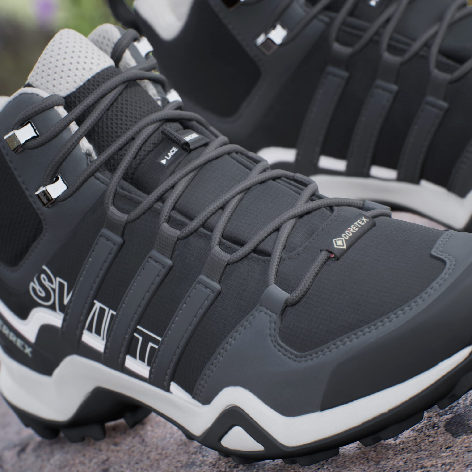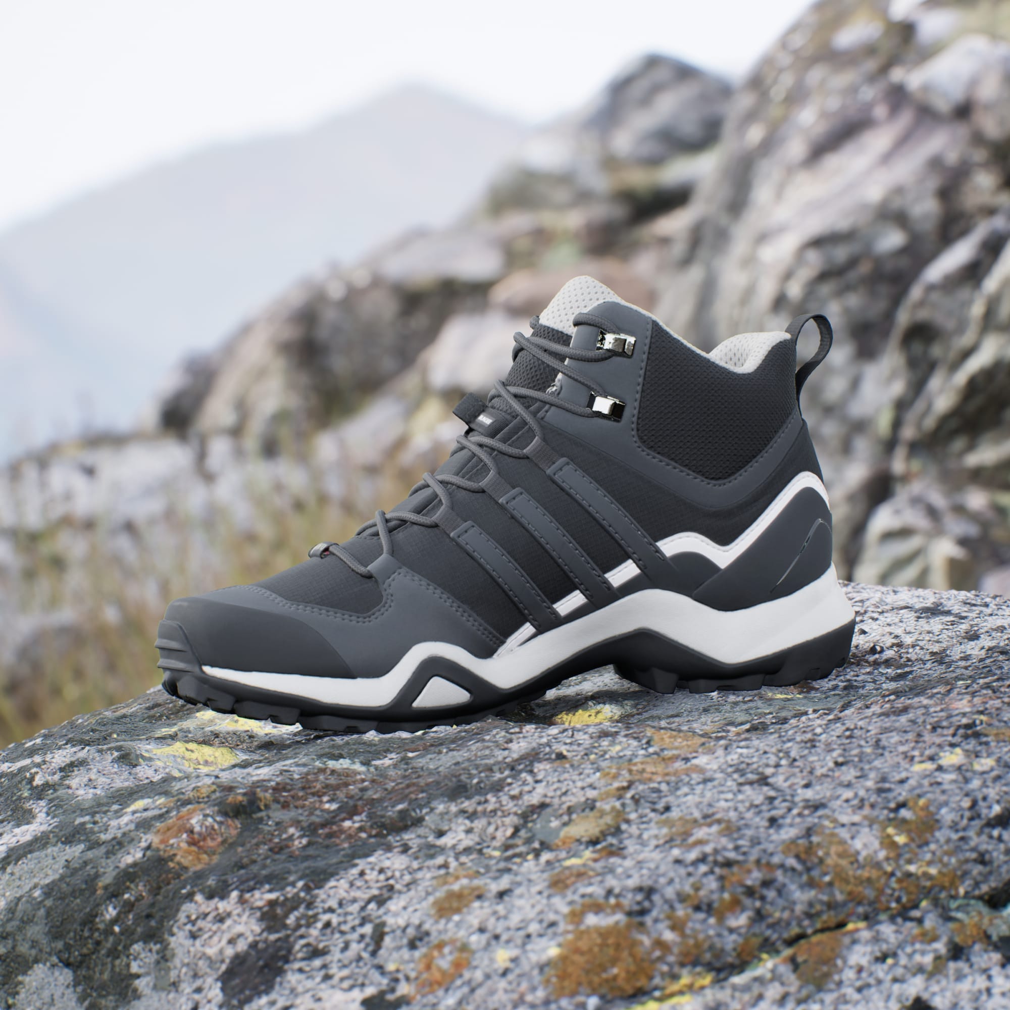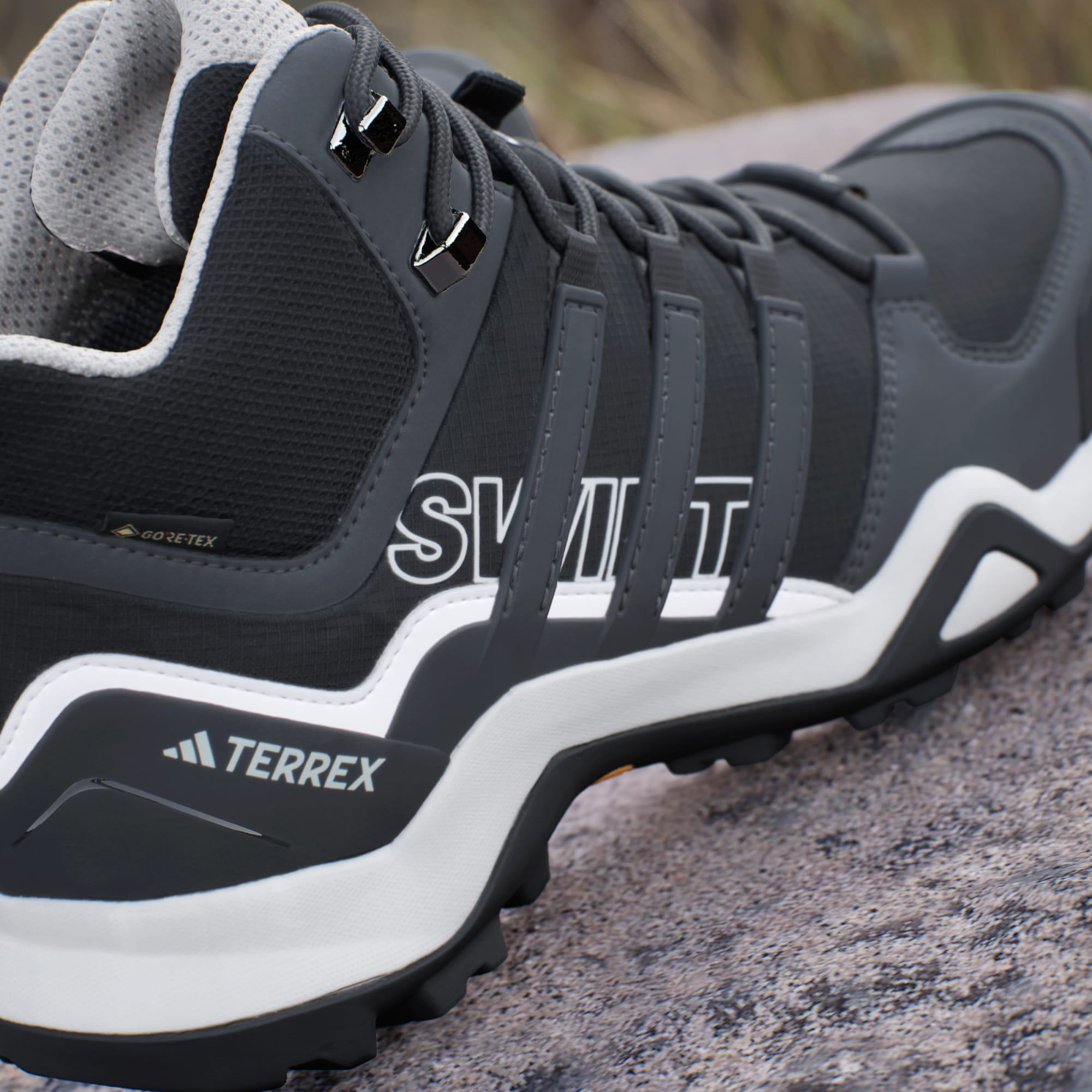 Disse adidas Terrex-terrengskoene er allsidige og slitesterke i terrenget, perfekte for alle slags eventyr og underlag. Den vanntette og pustende GORE-TEX-membranen beskytter mot vann, og lar føttene puste komfortabelt. Mellomhøy krage og kileformet pløse stenger støv og smuss ute, sånn at du kan fokusere på stien foran deg. De er lette og robuste, og lar deg bevege deg raskt gjennom alle slags eventyr. Yttersålen av Continental™-gummi gir ekstraordinært grep i alle forhold.