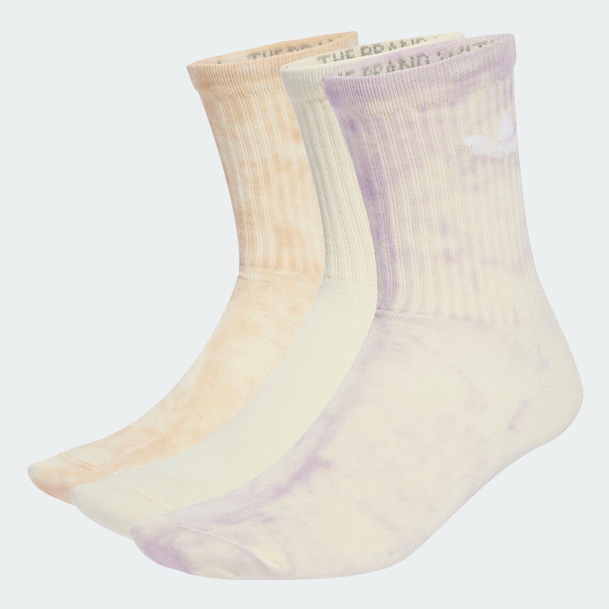 Disse mellomhøye adidas-sokkene er en diskret måte å gjøre en statement på, og har en batikkfargeteknikk på to par og et tonalt design på den tredje. Trefoil-logoen viser seg frem på mansjettene, i et nikk til sportsarven.
