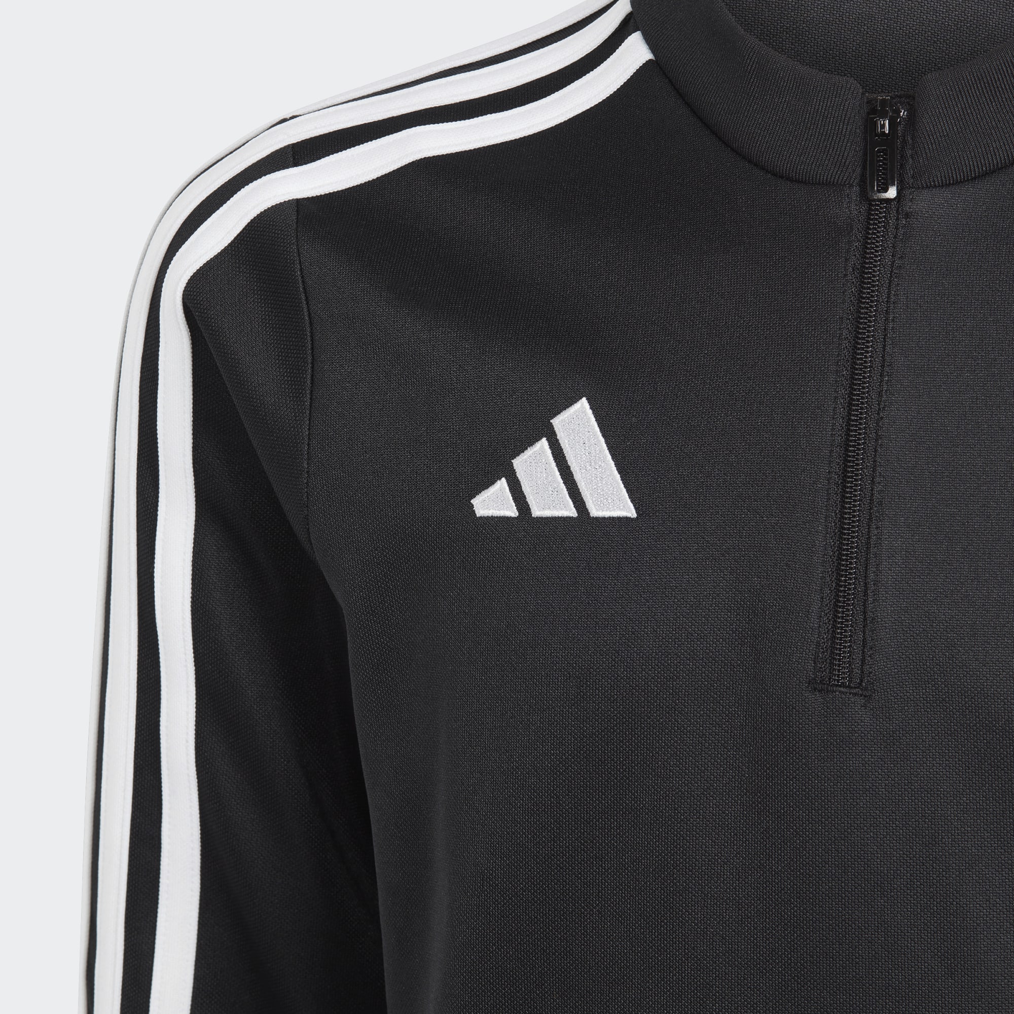 Essensielle treningsklær fra adidas. Ta på deg denne Tiro 23 Club-fotballoverdelen for juniorer før du inntar banen for de kjølige vinterøktene. Trekk den kvarte glidelåsen opp og dra ermene over hendene med tommelhullene på mansjettene. Du kan stole på at fuktkontrollerende AEROREADY holder deg komfortabel.