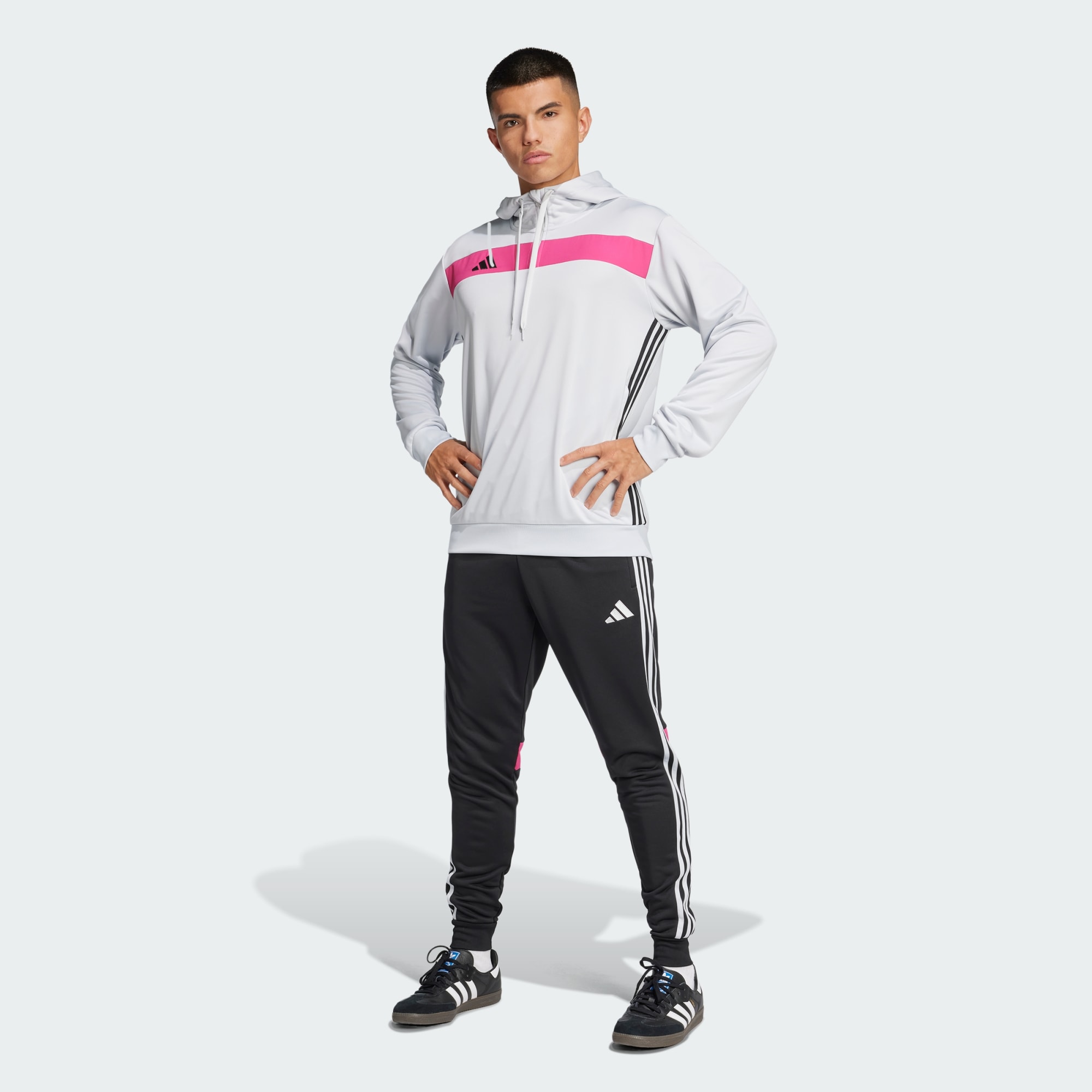 Oppgrader hviletiden i denne fotballinspirerte Tiro 25 Essentials-hettegenseren. Det myke collegestoffet gir avslappet komfort, mens den broderte 3 Bar-logoen og karakteristiske 3-Stripes viser frem adidas-stilen. Denne allsidige overdelen er perfekt for å slappe av etter trening, eller du kan ta den på før du drar til byen. Den gir garantert sportsinspirert komfort til hverdagen din. Dette produktet lages med 100 % resirkulerte materialer. Ved å gjenbruke materialer som allerede er produsert, bidrar vi til å redusere avfall og avhengigheten vår av begrensede ressurser, og reduserer fotavtrykket til produktene vi lager.