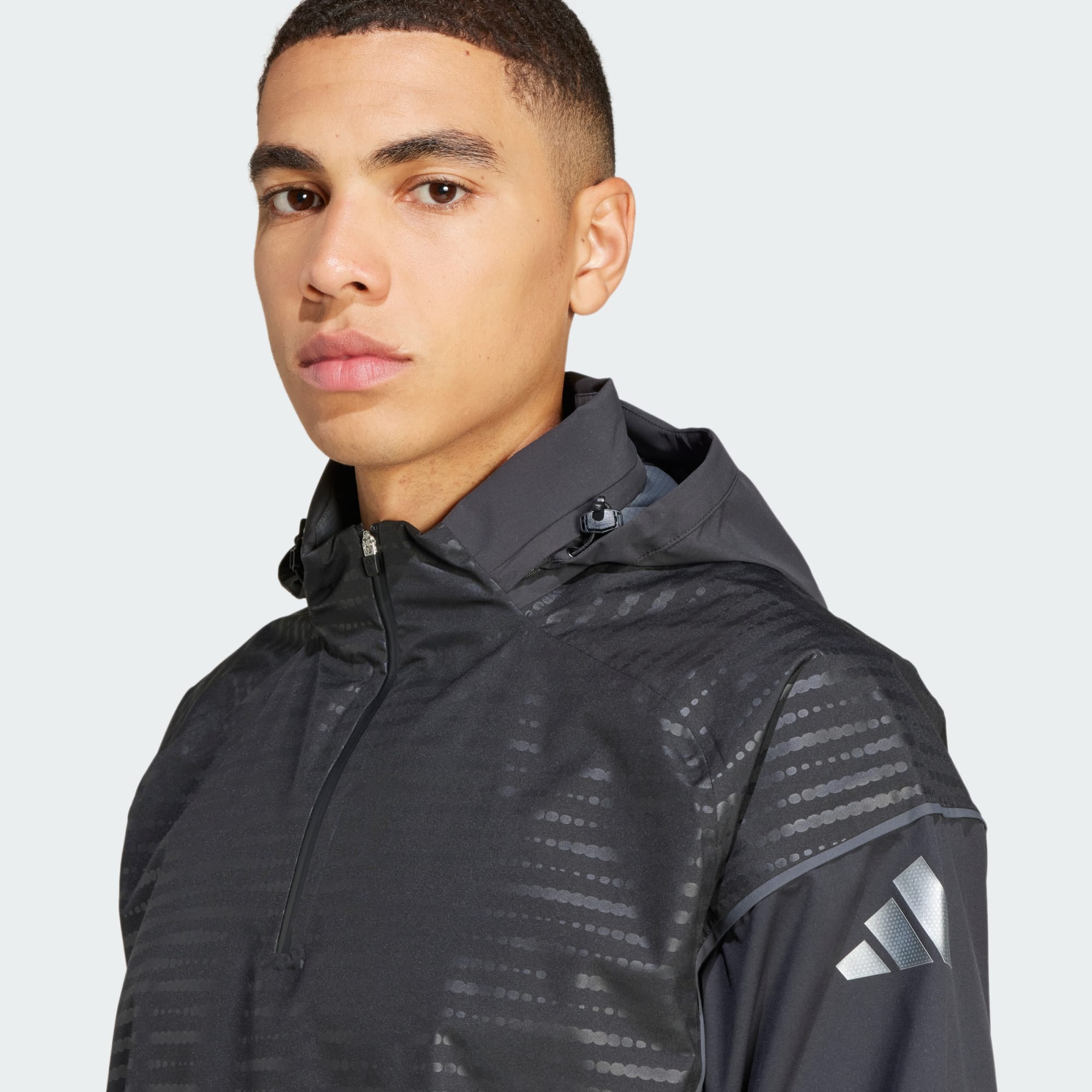 - Halv glidelås med snorjustering på hetten