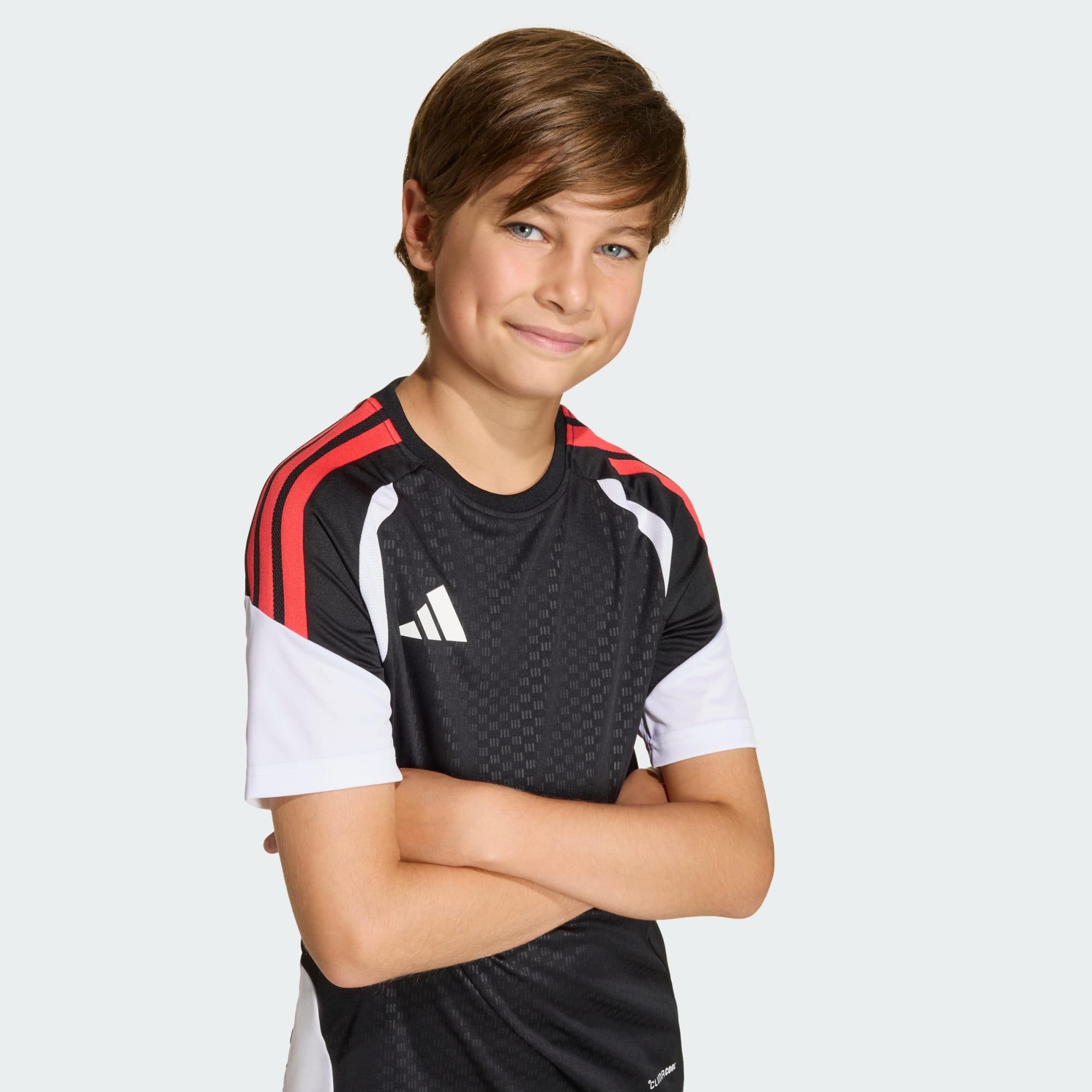 Tiro 26 Competition Training-trøyen designes for unge fotballentusiaster som er klare til å sette fart ut på banen med selvtilliten på plass. Denne sørger for at du ser stilsikker ut og er klar for alt. Kjølig. Tørr. Klar. Climacool transporterer bort fuktigheten, for kjølig, tørr og distraksjonsfri ytelse. På brystet sørger mesh-detaljer for at luften flyter og hodet ditt er fokusert på kampen, slik at du mestrer hver spurt og rondo. Ta på deg denne lette adidas-treningstrøyen når det er på tide å ta spillet ditt på alvor og vise frem ferdighetene dine fra første til siste sekund.