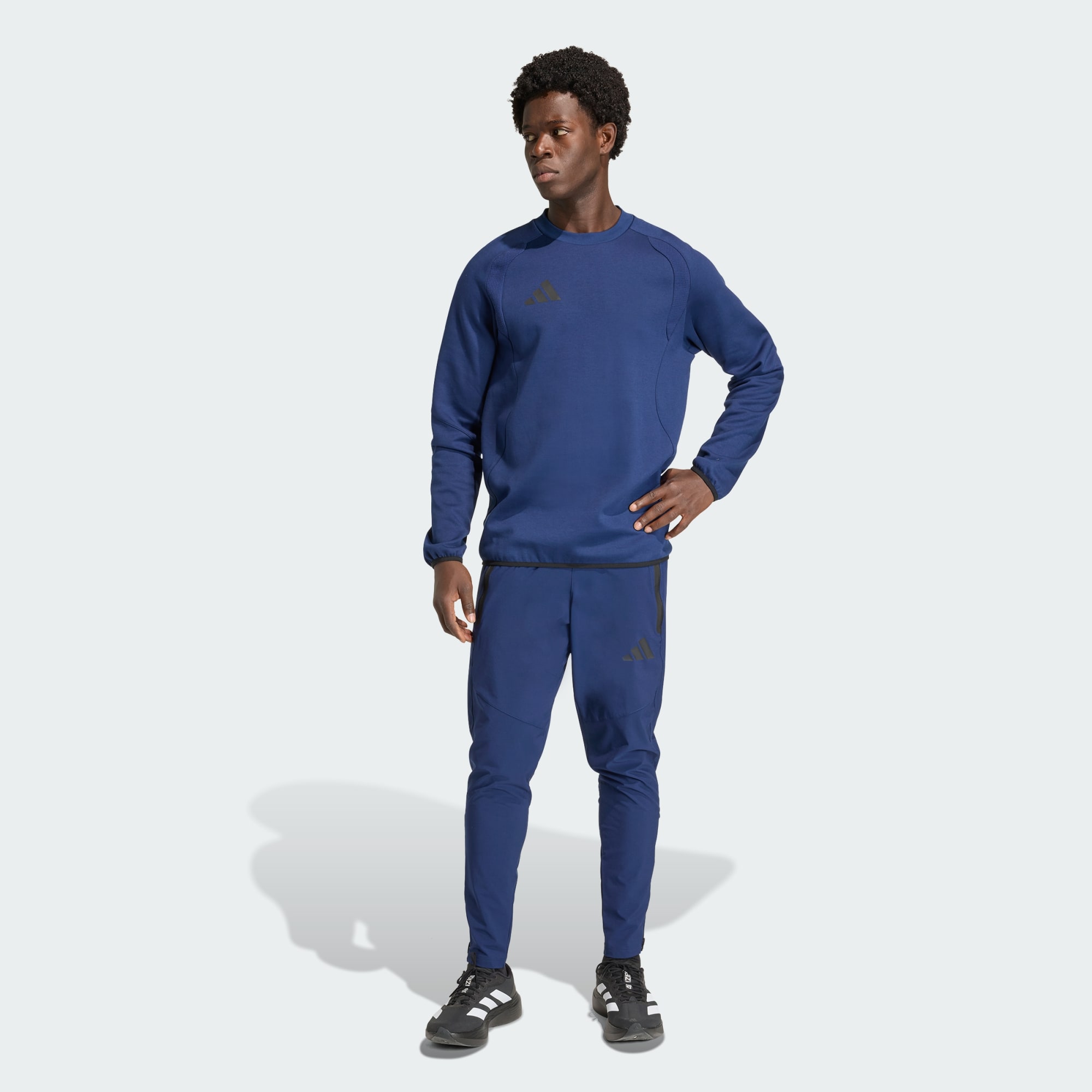 Tiro Travel Crew-genseren passer på banen og gaten og designes for de som lever og ånder for fotball. De ergonomiske snittlinjene og de tekniske detaljene skaper et moderne utseende som komplementerer den aktive livsstilen din. Normal passform betyr en avslappet følelse, mens rund hals sørger for det klassiske uttrykket. Konstruksjonen med spacer-stoff leverer komfort og slitestyrke og gjør denne genseren til et basisplagg i garderoben din. adidas performance-brandingen løfter subtilt det overordnede designet, slik at du kler deg i en historie full av innovasjon og stil.