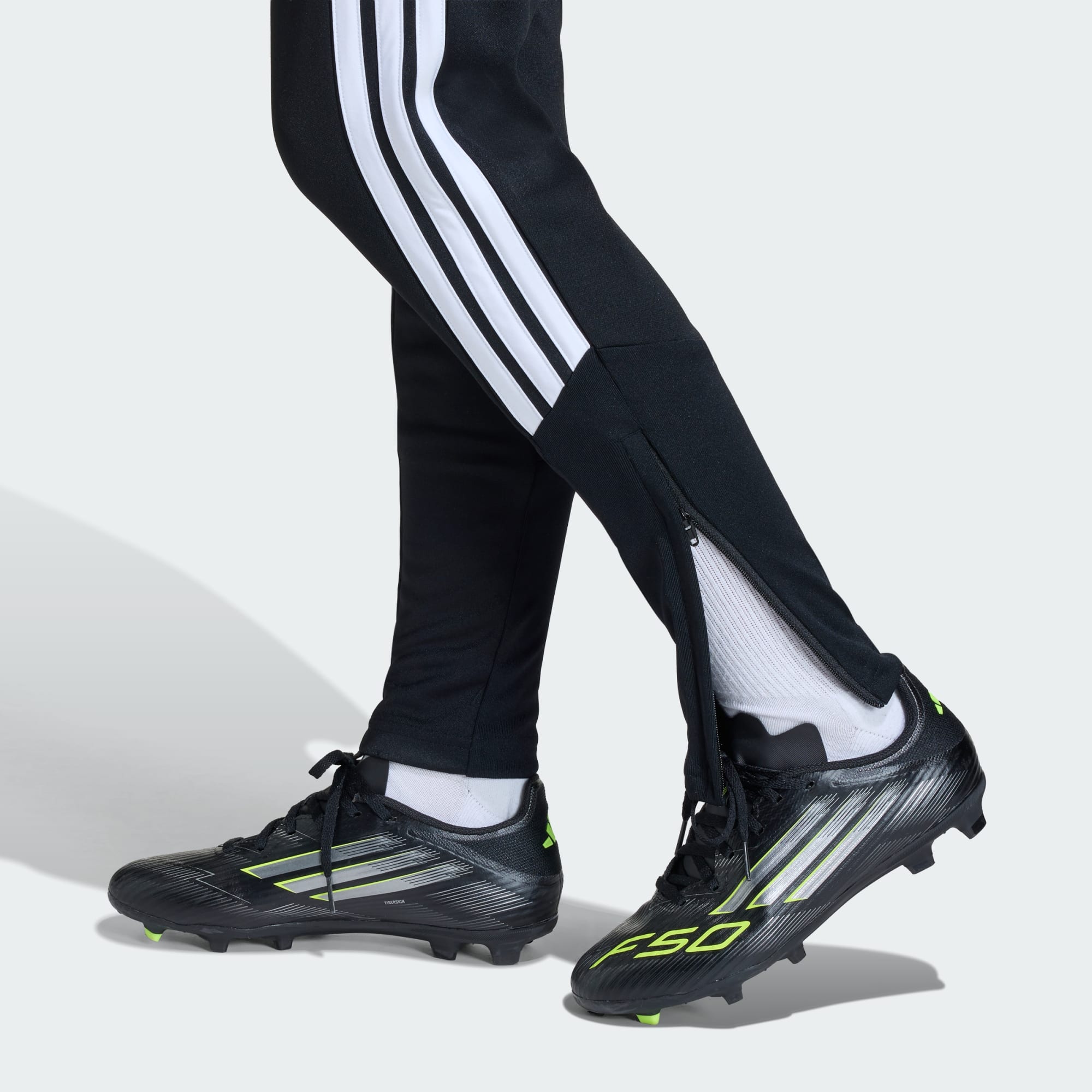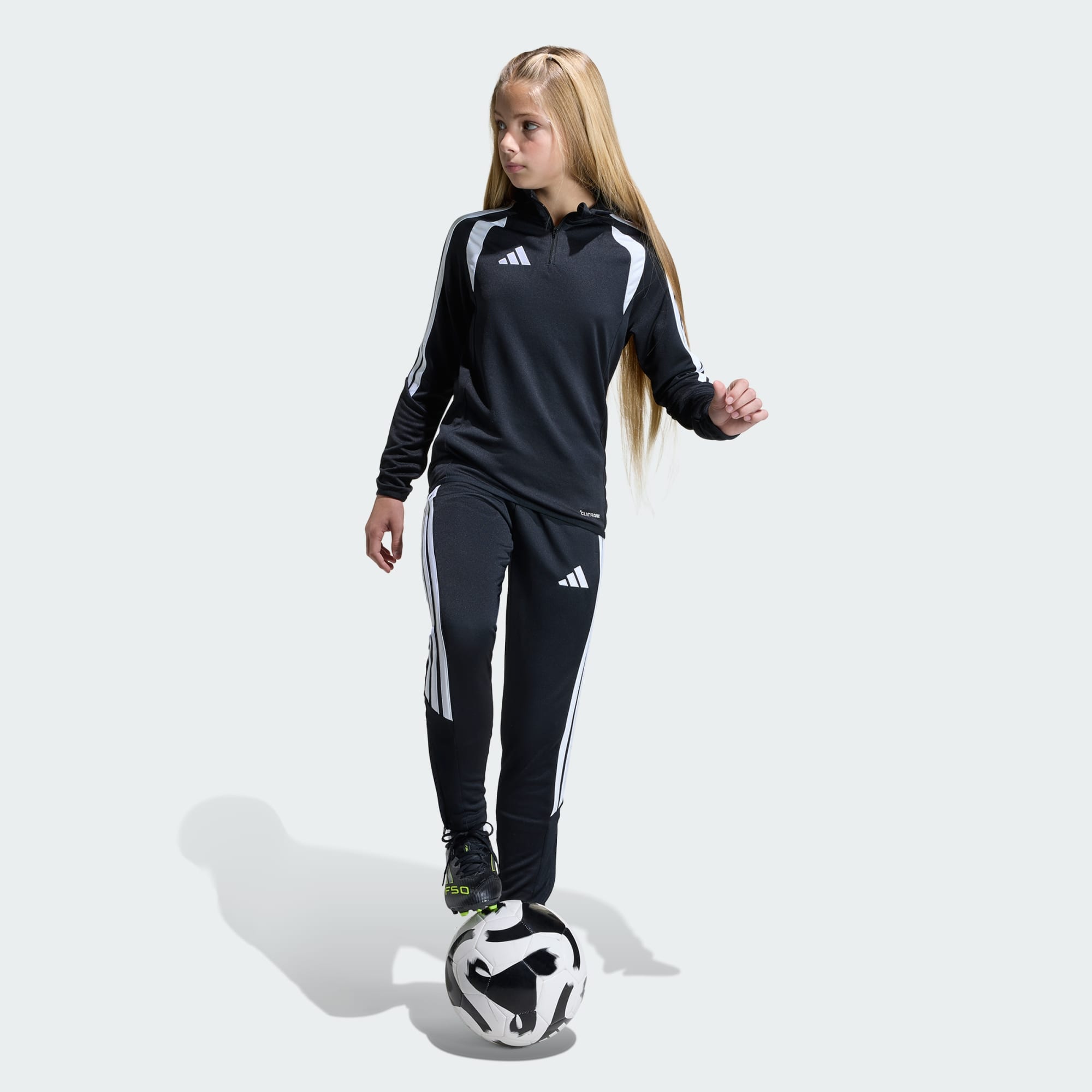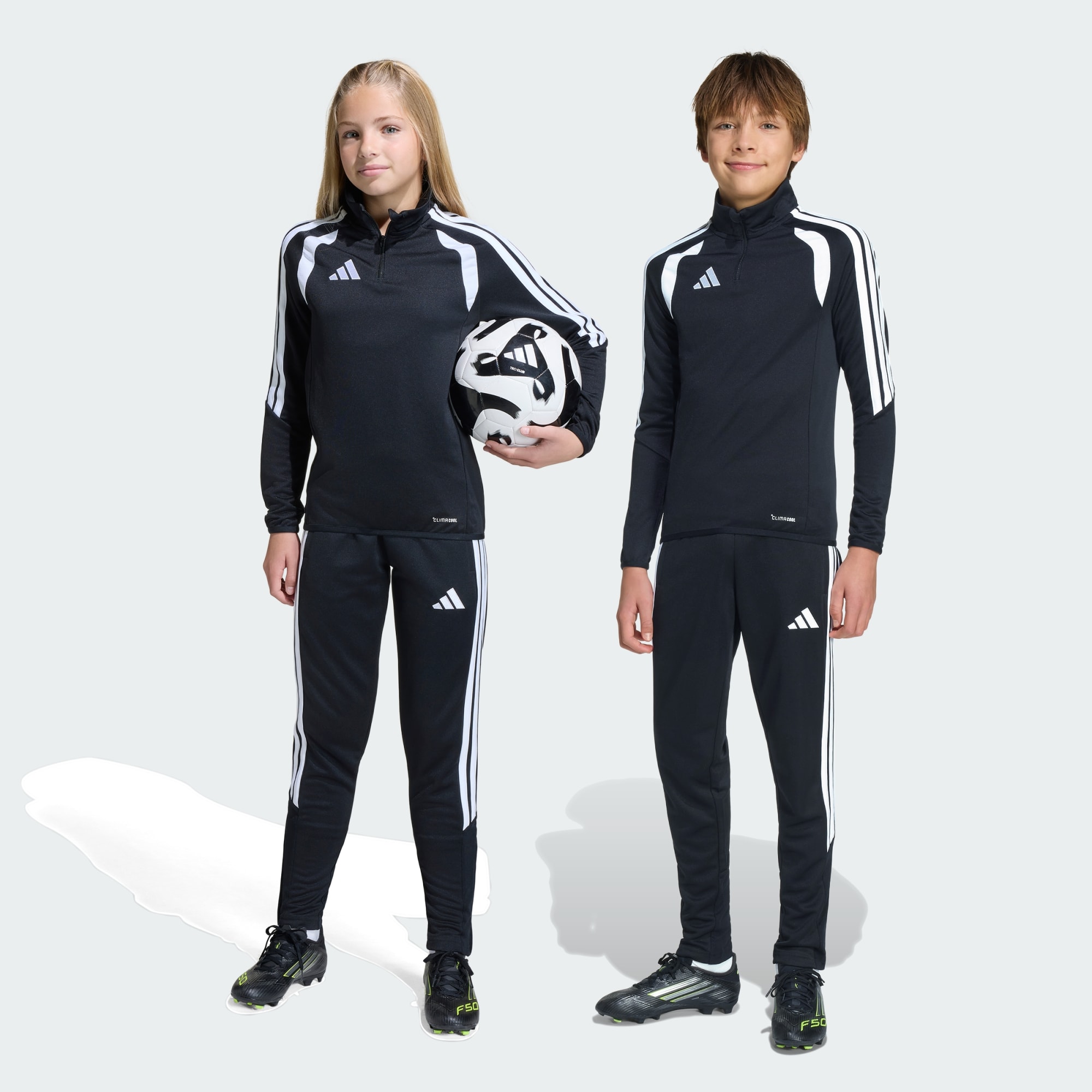 Vi presenterer Tiro26 League Training Slim-buksen for unge fotballentusiaster. Den er inspirert av design på elitenivå, med et elegant og moderne utseende for spirende spillere som vil å etterligne fotballheltene sine. Kjølig. Tørr. Klar. Climacool transporterer bort fuktighet, og legger til rette for kjølig, tørr og distraksjonsfri ytelse. Det hurtigtørkende stoffet hjelper barna med å føle seg kjølige og tørre gjennom intense treningsøkter, mens innfellingene rundt kroppen skaper en omsluttet silhuett. Designet med smal passform sitter kroppsnært, med et mellomhøyt liv og justerbar strammesnor for komfort. Glidelåsene på bena gjør dem enkle å ta av og på under trening, og lommene med glidelås har sikker oppbevaringsplass til de viktige tingene. Klassisk brodert adidas-logo og påførte 3-Stripes signerer det sporty uttrykket. La barna kle på seg fotballånden med denne treningsbuksen fra adidas. Enten de leker med ballen på løkka eller finpusser ferdighetene sine sammen med det lokale ligalaget, skiller de seg klart ut fra mengden.