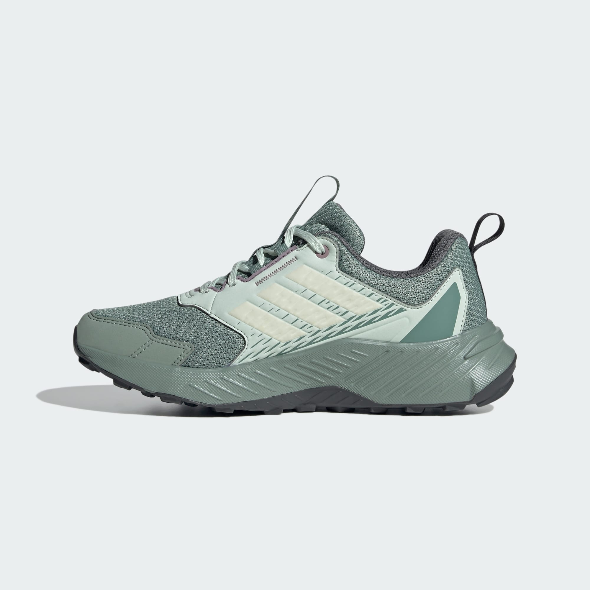 Klar, ferdig og utforsk. Enten du foretrekker å løpe eller gå, støtter disse adidas Terrex-terrengløpeskoene innsatsen din med en balanse mellom dempet komfort og pustende egenskaper. Den forsterkede overdelen gir slitestyrke og støtte for terrenget. Gripesikker Traxion-yttersåle av gummi med riller gir godt grep i all slags terreng.