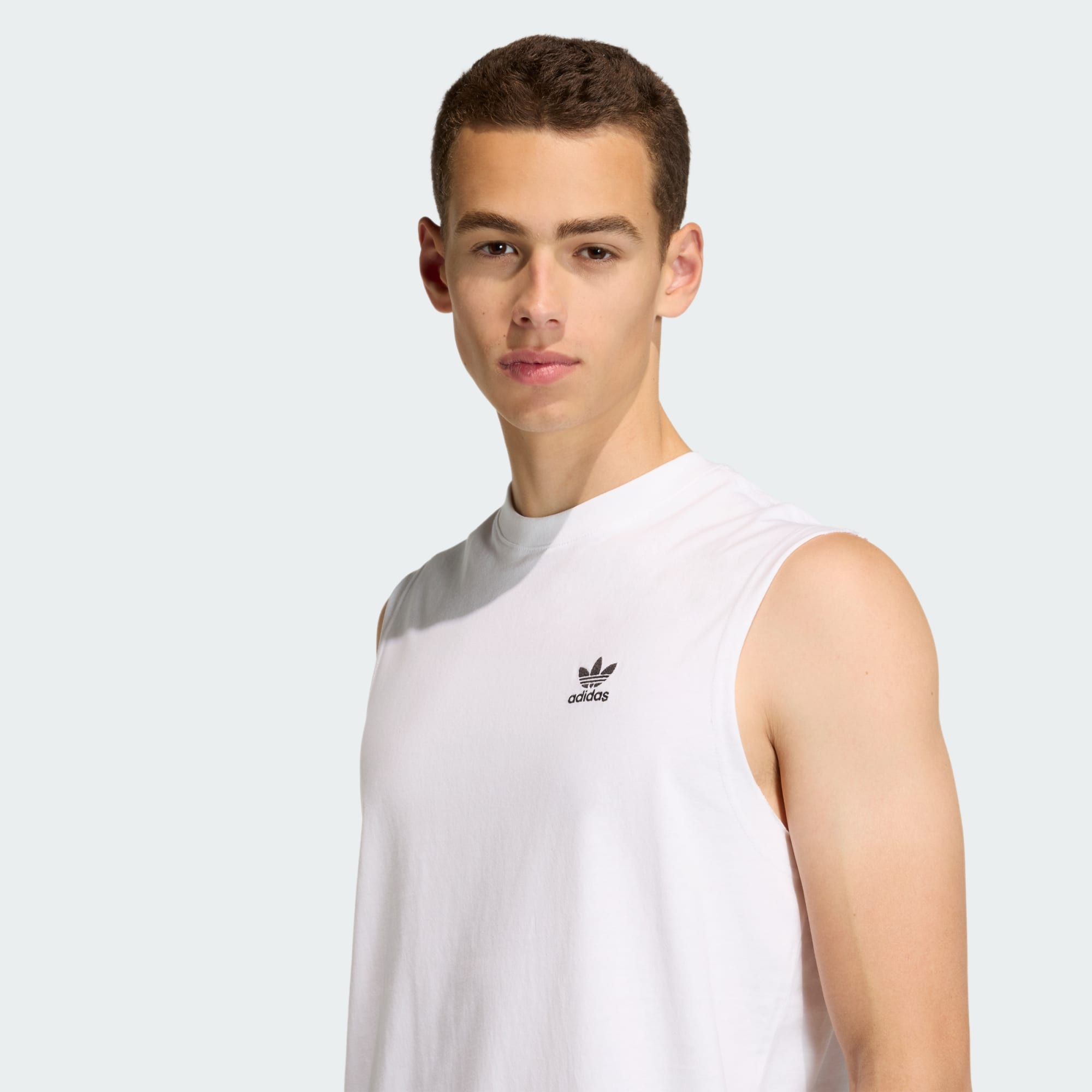 Trefoil Essentials Sleeveless-t-skjorten er et basisplagg som kombinerer myk komfort med elegant enkelhet. Konstruksjonen av enkelt-jersey lover en lett følelse. Rund hals blir til et klassisk uttrykk som aldri går av moten, enten du bruker plagget som et av flere lag under en overdel, eller på egenhånd. Trefoil-logoen har med seg en følelse av den ikoniske adidas-brandingen. Denne t-skjorten handler om enkelhet og allsidighet. Ta den på og kjenn på bevegelsesfriheten.