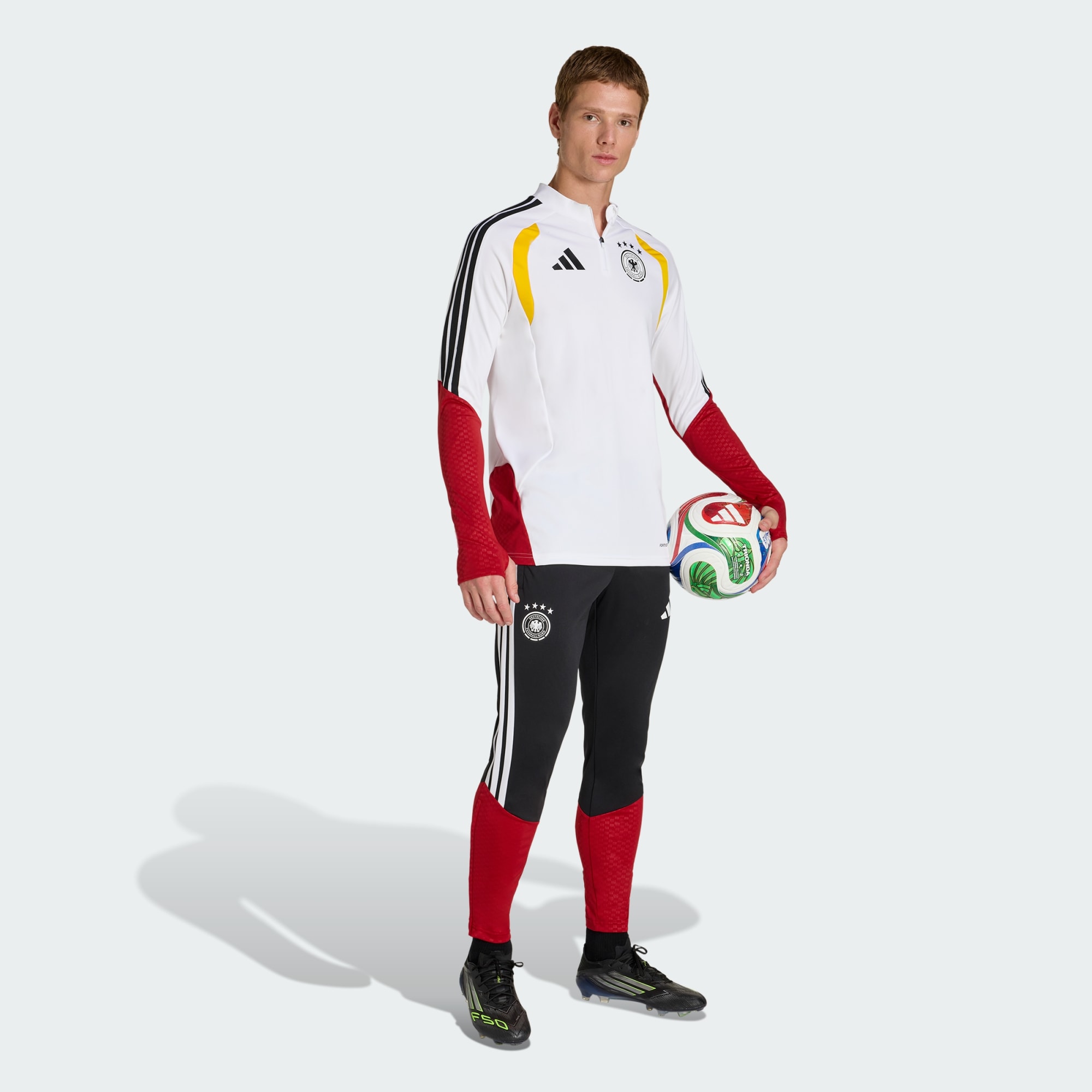 Tyskland 26 Tiro Training-overdelen designes for alle de som lever og ånder for fotball. Med det moderne designet gjenspeiles fotball-DNA-et fra adidas, og gir treningsoverdelen spillerne selvtilliten til å yte på toppnivå, både på og utenfor banen. Treningsoverdelen lages av høykvalitets materialer, og har en slank passform som følger bevegelsene dine. De mekanisk elastiske stoffene kommer med den nødvendige ytelsen, passformen og komforten, mens de ikoniske mesh-innfellingene på brystet gir ventilering gjennom de intense treningsøktene. Denne designes med Formotion-teknologi. Beveg deg fritt. adidas Formotion designes for å gi deg bevegelsesfrihet, ikke begrense den. Glidelåsen foran legger til rette for enkel bruk, så denne treningsoverdelen er et smart valg for alle som krever det beste av utstyret sitt. Gjør denne treningsoverdelen til det foretrukne valget ditt for stil og ytelse, enten du trener til den neste store kampen eller bare koser deg med en avslappet balltrening.