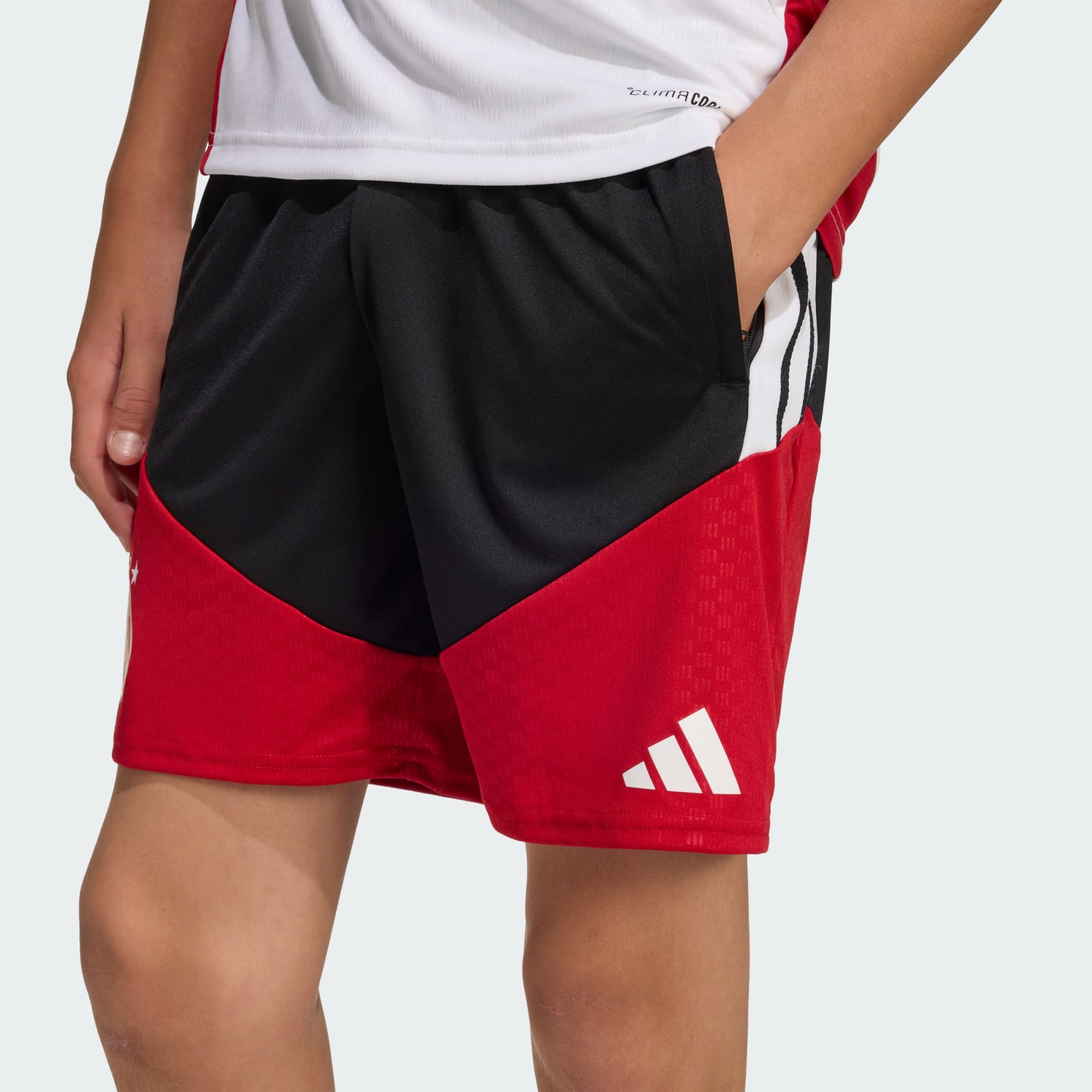 Tyskland 26 Tiro Training-shortsen designes for å hjelpe unge fotballspillere med å levere på sitt beste nivå. Den lages med oppmerksomheten til detaljer som adidas er kjent for, og lages for banetreningen. Kjølig. Tørr. Klar. Climacool transporterer bort fuktigheten, for kjølig, tørr og distraksjonsfri ytelse. Slitesterkt interlock-stoff hjelper shortsen med å tåle påkjenningene fra treningen. Normal passform og et mellomhøyt liv gir komfort og bevegelsesfrihet, mens lukking med strammesnor gir justerbarhet og sikkert grep. Preget designelement gir et snev av stil, noe som gjør denne shortsen til et iøynefallende valg for alle unge fotballelskere. Med adidas-utstyr kan barna sette fart ut på banen med full selvtillit og stil.