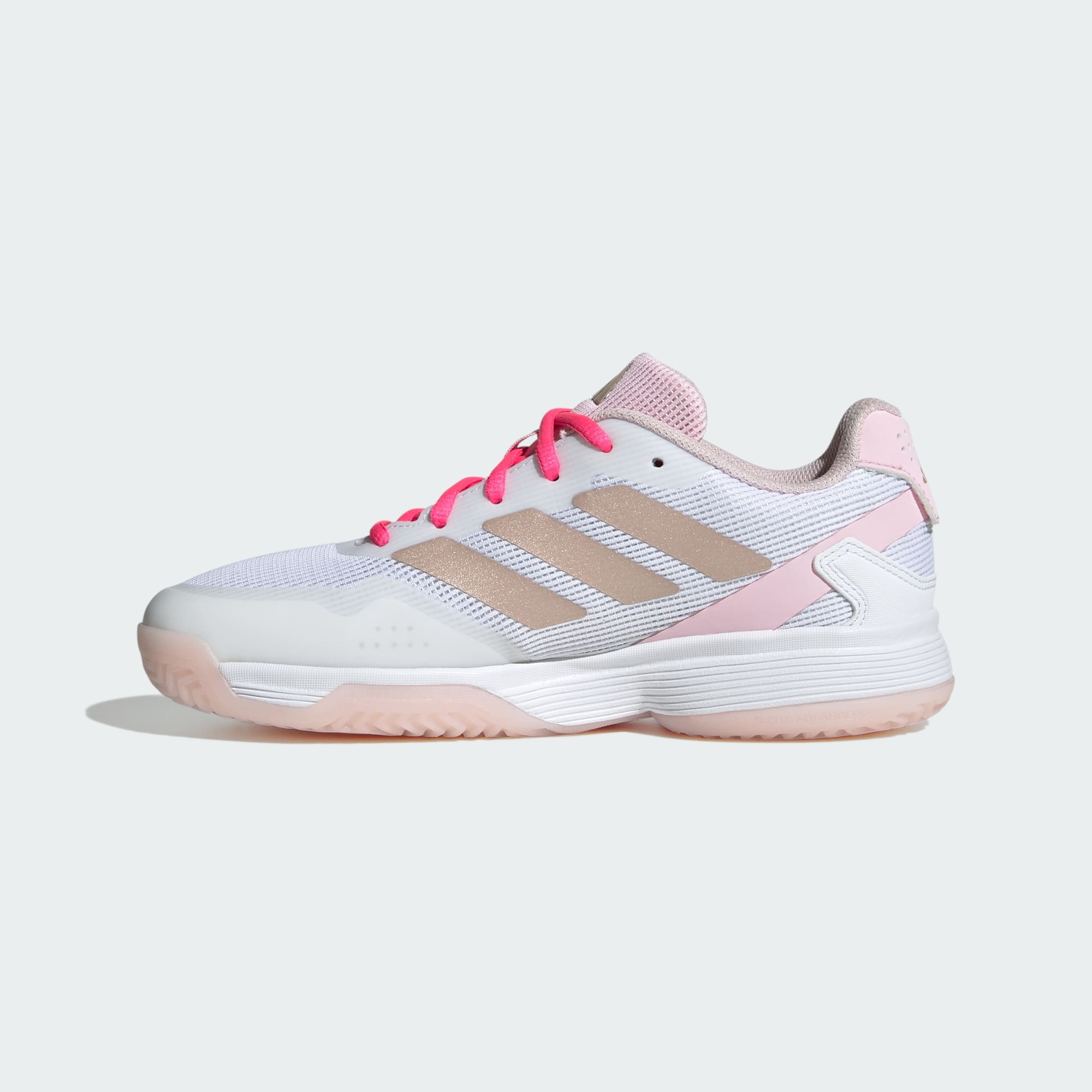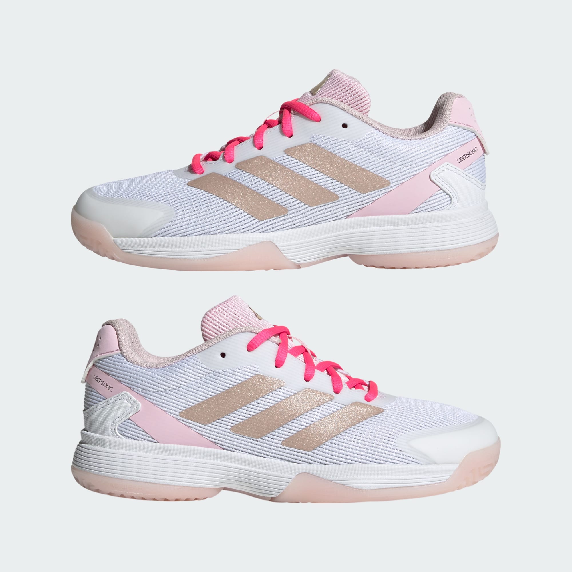 Se dem lade opp spillet sitt på banen i disse Ubersonic-tennisskoene for barn fra adidas. Den lette tekstiloverdelen etterligner stilen til Adizero Ubersonic 5, og er laget for raske bevegelser, slik at unge spillere kan vise frem smidigheten sin. På undersiden gir Adiwear-yttersålen maksimal slitestyrke for langvarig spill. Dette produktet inneholder minst 20 % resirkulerte materialer. Ved å gjenbruke materialer som allerede er produsert, bidrar vi til å redusere avfall og avhengigheten vår av begrensede ressurser, og reduserer fotavtrykket til produktene vi lager.