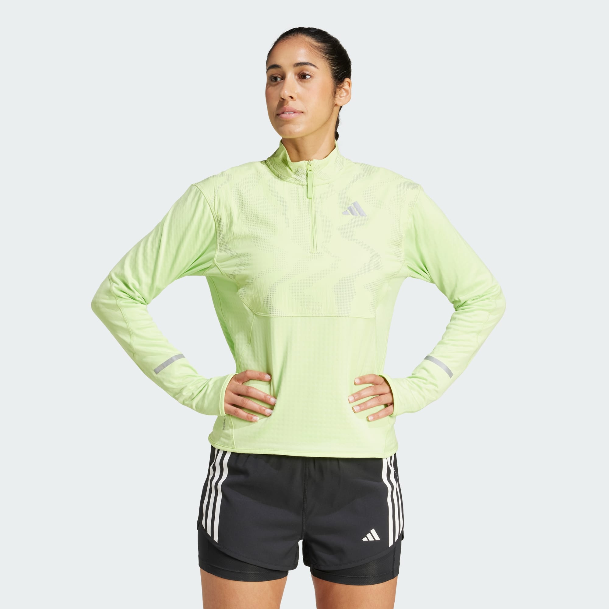 Når solen henger lavt men du vil løpe uansett, kan du ta på deg denne adidas-overdelen med halv glidelås og sette kursen ut. Refleksdetaljene sørger for at du blir sett i mørket, og gjør den til den perfekte partneren når du skal trene om morgenen og kvelden. CLIMAWARM holder på varmen og slipper ut svette, for varm, tørr og fokusert ytelse. Dette produktet lages med minst 70 % resirkulerte materialer. Ved å gjenbruke materialer som allerede er produsert, bidrar vi til å redusere avfall og avhengigheten vår av begrensede ressurser, og reduserer fotavtrykket til produktene vi lager.