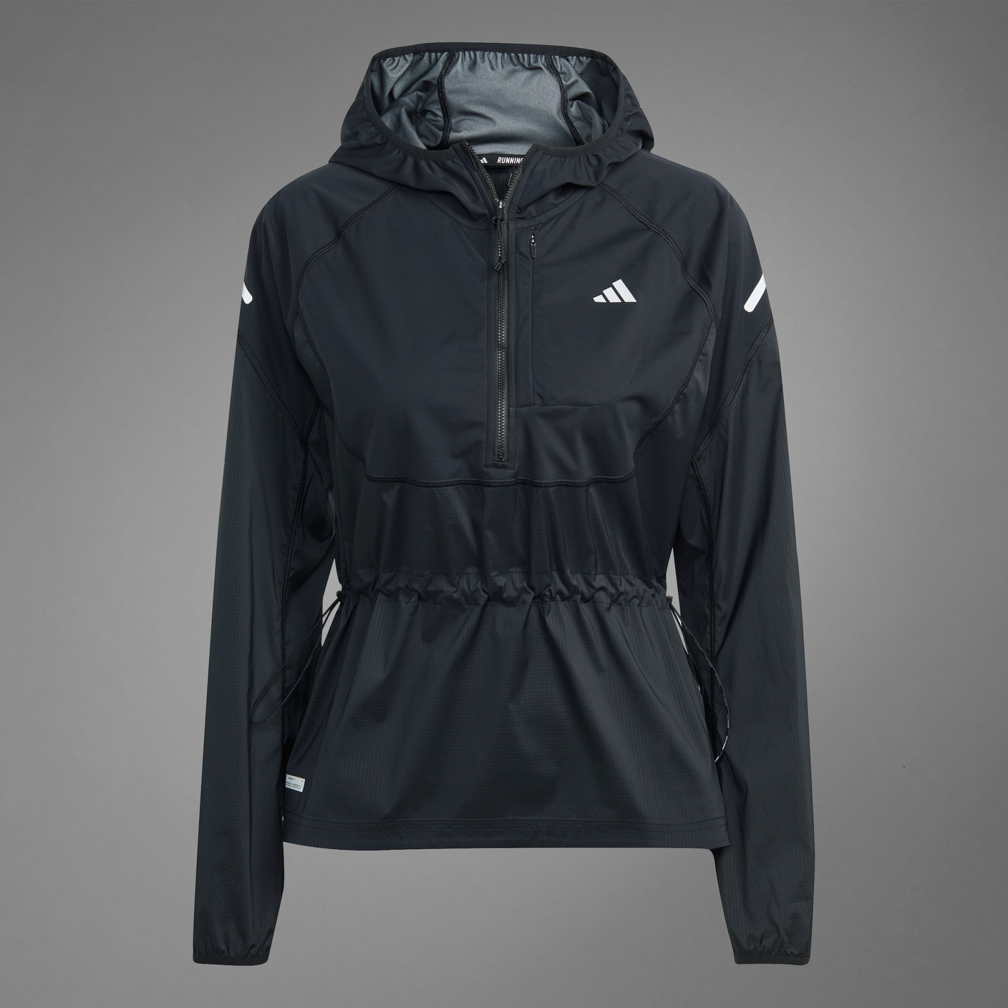 Når du ivrer etter å komme deg ut på asfalten men regnet lurer på horisonten, har den nyeste løpekolleksjonen fra adidas akkurat det du trenger. Trekk opp glidelåsen på Ultimate-jakken og ta løpeturene dine opp et nivå med en løpejakke som er enkel å bruke som et lag og kombinerer funksjonalitet og design med høy ytelse. Innebygget skjerm på hetten gir deg ekstra beskyttelse, og det slitesterke, vannavstøtende belegget holder deg tørr og i gang gjennom duskregnet. Gli gjennom distraksjonsfrie løpeturer takket være telefonlommen på brystet og de ekstra sidelommene, som har trygg plass til alle nødvendighetene dine. Enten du er ute på en kjapp joggetur eller skal legge ut på lengre distanser, kan du omfavne elementene med full selvtillit i Ultimate-jakken laget for all slags vær.