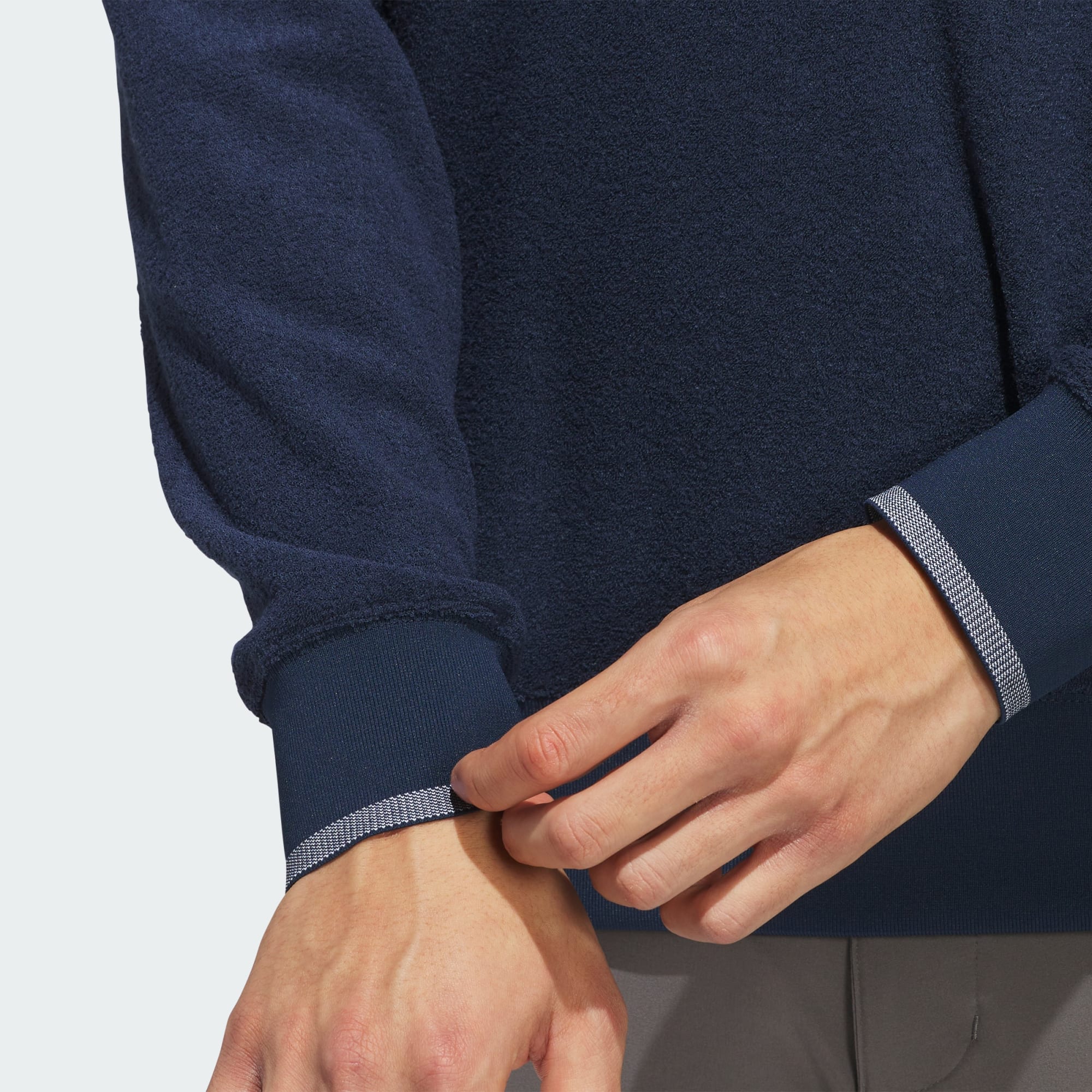 Ren banestil for både avslappede og alvorlige runder. Denne golfgenseren fra adidas leverer varme til de kjølige dagene, med det børstede fleece-stoffet. Diskret tekstur setter prikken over i-en for et uttrykk som spiller godt på alle baner.
