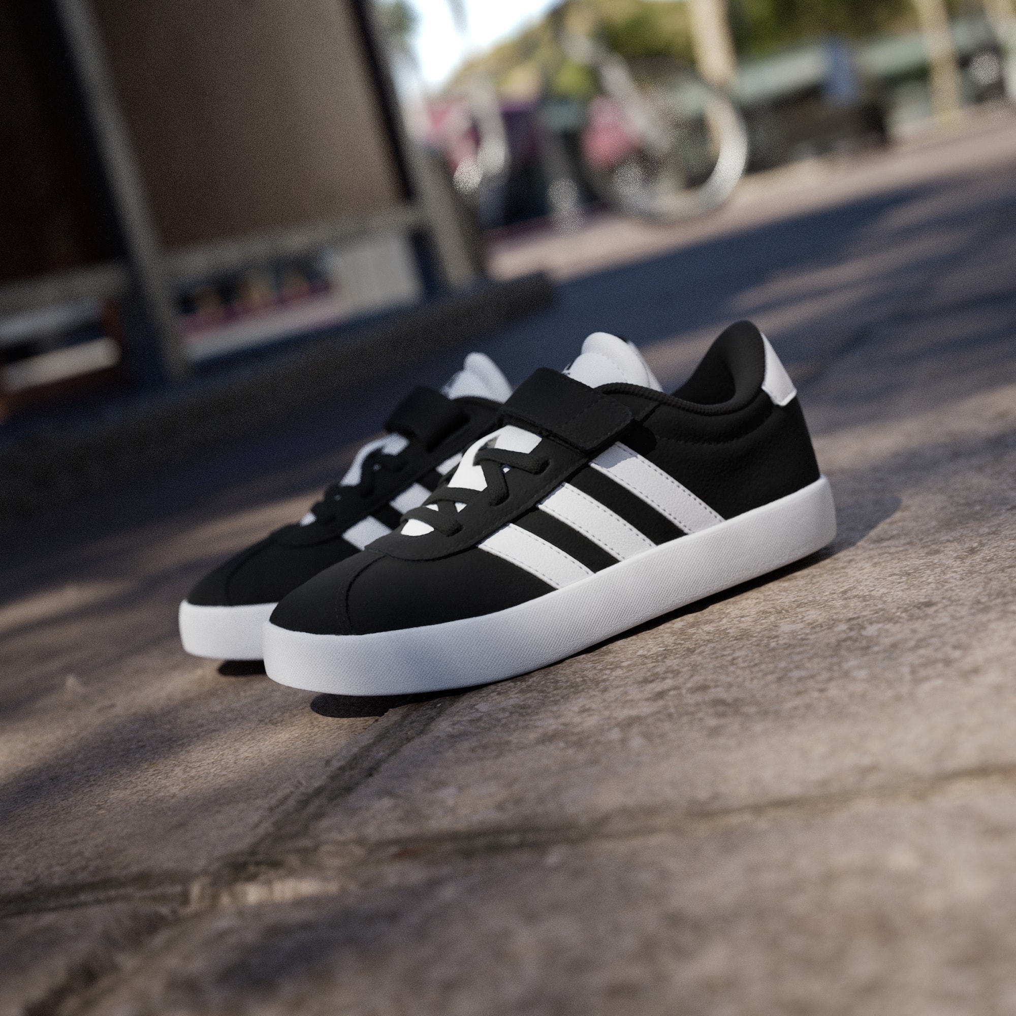 Når barna er på farten, trenger de sko som holder følge. Borrelåsstroppene på disse adidas-skoene gjør dem enkle å ta av og på, mens den semskede overdelen, tekstilfôret og yttersålen av vulkanisert gummi takler eventyr i skateparken eller på lekeplassen. Disse skoene er komfortable og slitesterke, og er klare for alt.